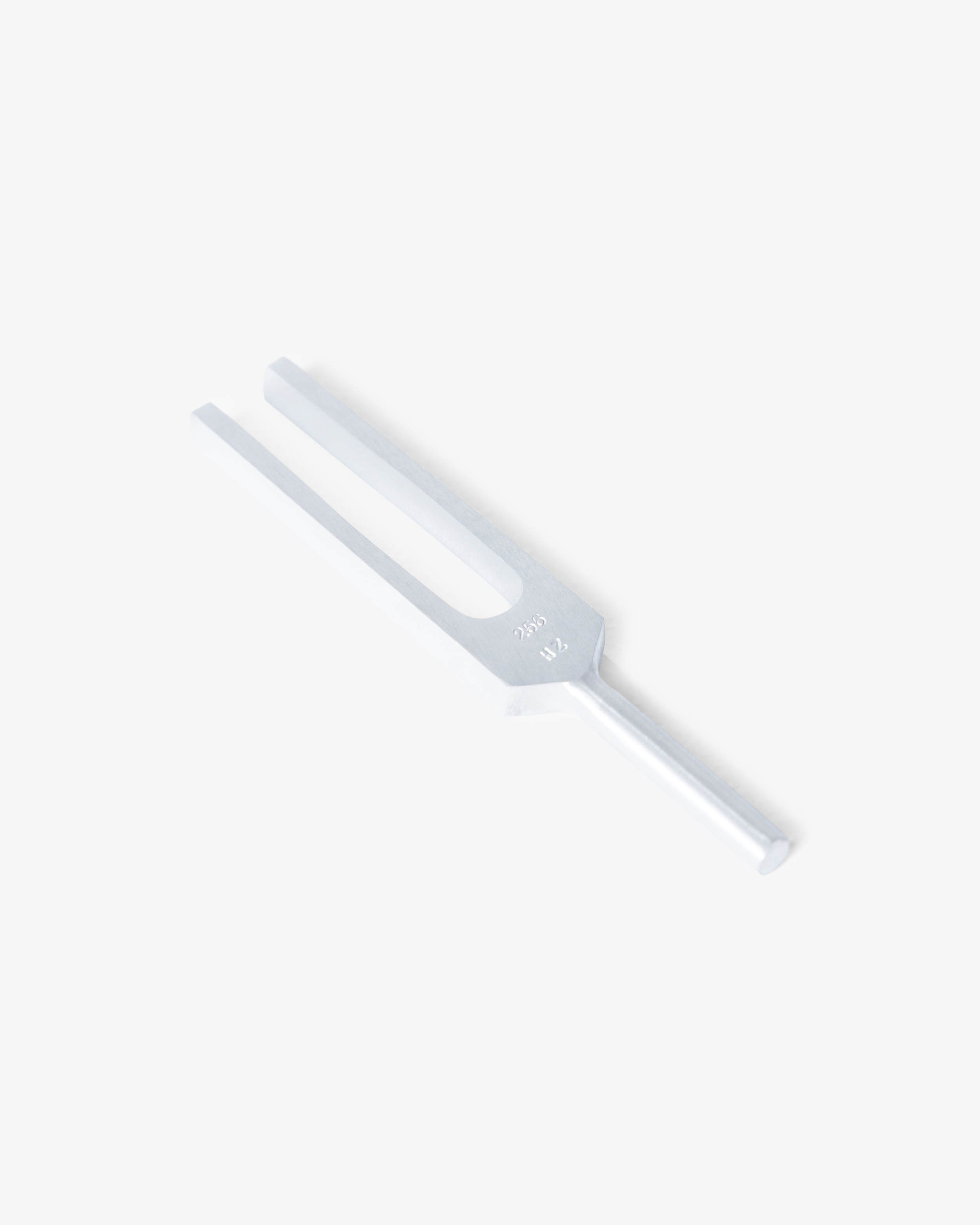 Lääketieteellinen äänirauta alumiinista. Ääniraudassa on kevyt paino ja pitkä kahva tutkimuksen helpottamiseksi.