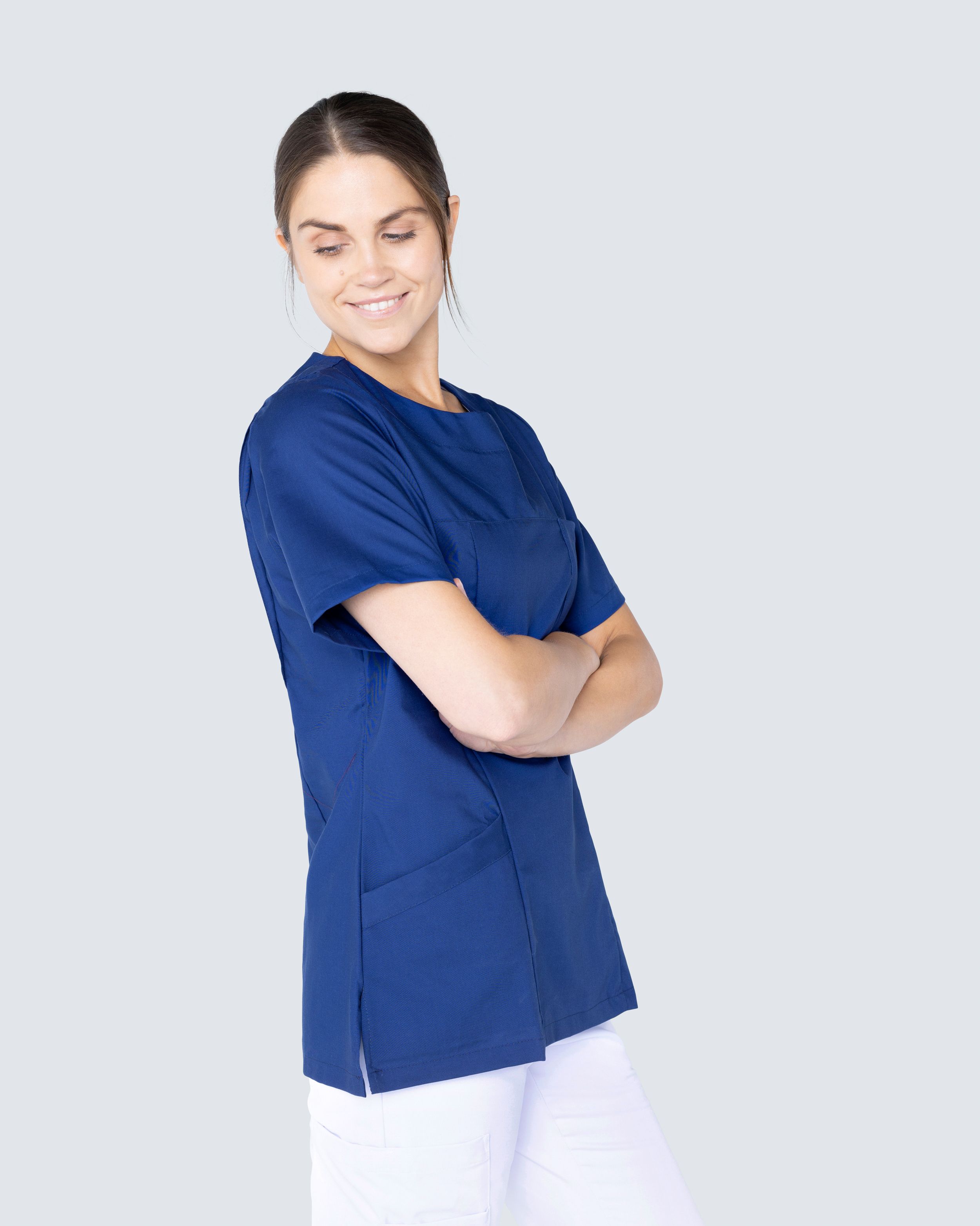 Kaunis työpaita, jossa kevyesti kapeneva vyötärö ja pyöreä kaula-aukko antavat mukavan ja tyylikkään istuvuuden. Puserossa on sekä rintatasku että kaksi tilavaa lonkkataskua. Sivulaskosten ansiosta saat hyvän liikkuvuuden.