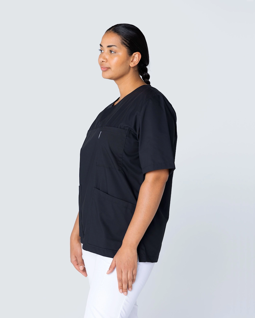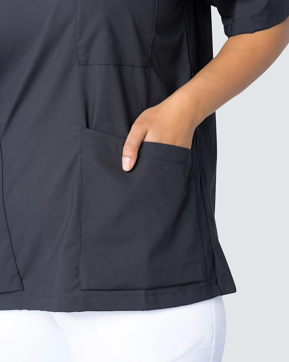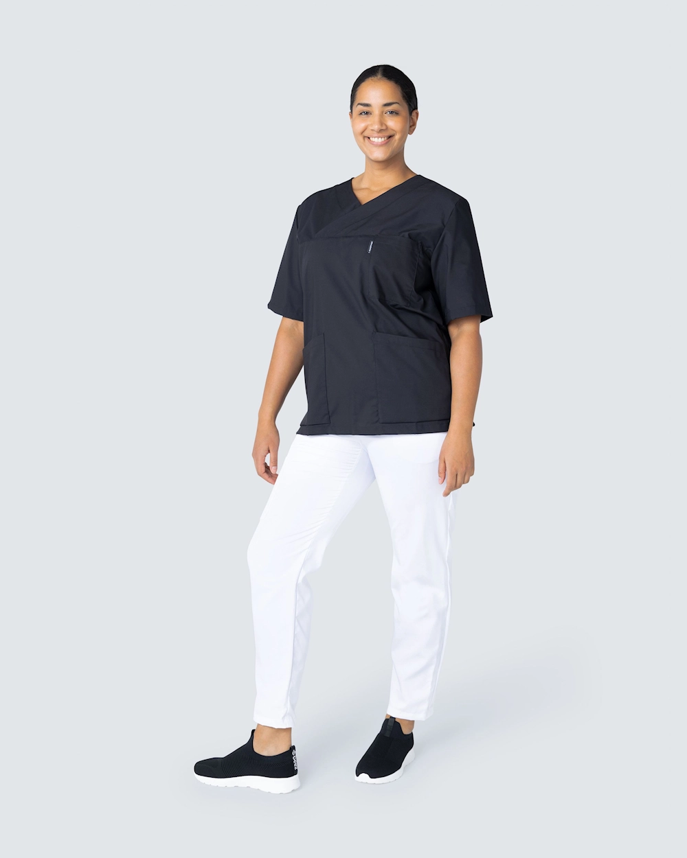 Mukava työpusero suorassa mallissa, hiukan pidemmät hihat. Puserossa on rintatasku ja kaksi sivutaskua, joista toisessa on ylimääräinen puhelintasku ja toisessa avaimenreikä, jossa on helppo säilyttää avaimet ja henkilökortit. Halkiot sivuilla ja takaosissa takaavat paljon liikkumisvapautta.