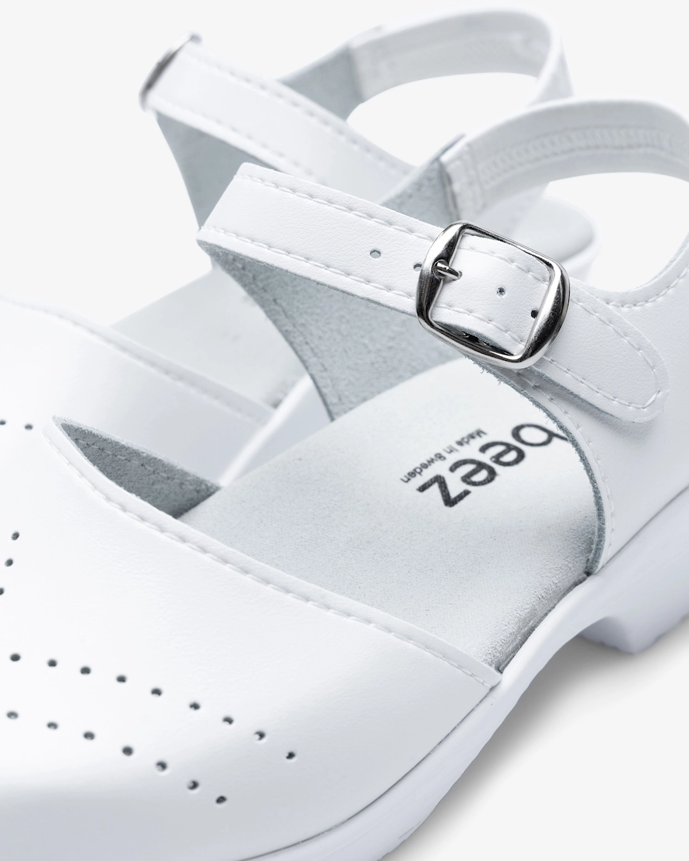 Color4caren työkengät valmistetaan käsin Ruotsissa ja on suunniteltu terveydenhuollon ammattilaisille. Yläosa on valmistettu aidosta nahasta, jossa on mattapintainen suojapeite. PU-pinnoite tarkoittaa, että voit puhdistaa pinnan miedolla saippualla ja vedellä. Pohja on valmistettu pehmeästä, kestävästä PU:sta (polyuretaanista), ja siinä on puun viilulevyä. Kenkä hengittää hyvin ja siinä on kova kärki, joka suojaa varpaita kolhuilta. Täydelliset kengät heille, jotka työskentelevät pitkiä päiviä kovilla pinnoilla.