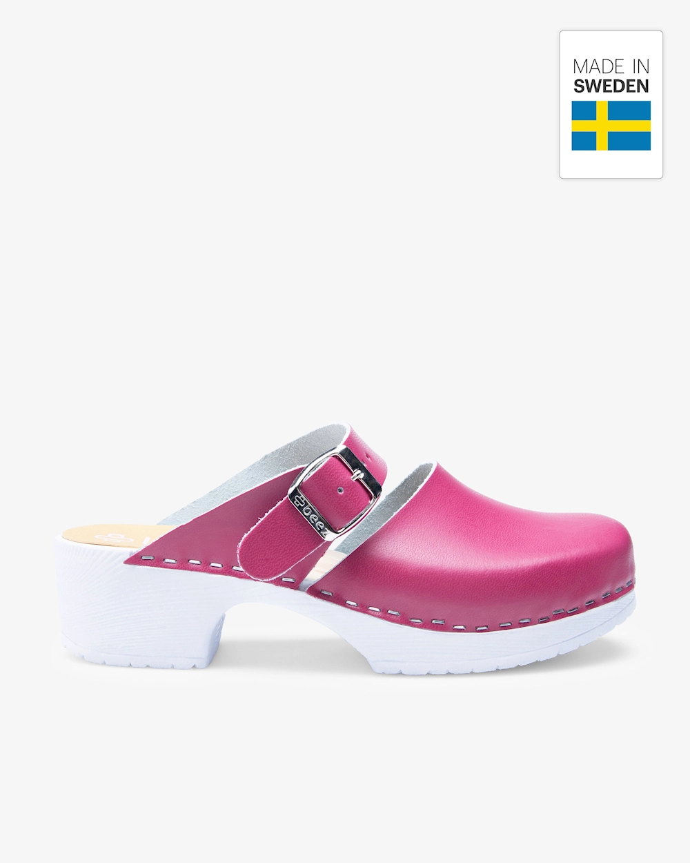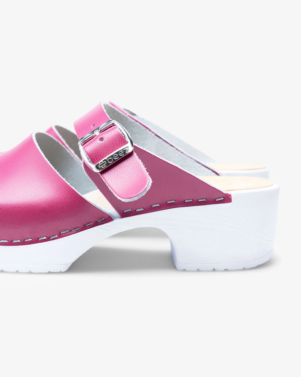 Belle on trendikäs työkenkä tyyllikkäällä muotoilulla. Olemme hakeneet inspiraatiota klassisesta puukengästä, mutta olemme lisänneet modernin otteen säädettävällä soljella sekä ilmavilla leikkauksilla. Kengän ulkopohja on valmistettu PU-kumista, joka tarjoaa vakaan pidon. Kengän jalkapeti on valmistettu puuviilusta, joka antaa hyvän tuen jaloille pitkissä työvuoroissa. PU-päällisen ansiosta puhdistat ja pyyhit kengät helposti - optimaalinen vaihtoehto sinulle, joka työskentelet hoitoalalla.