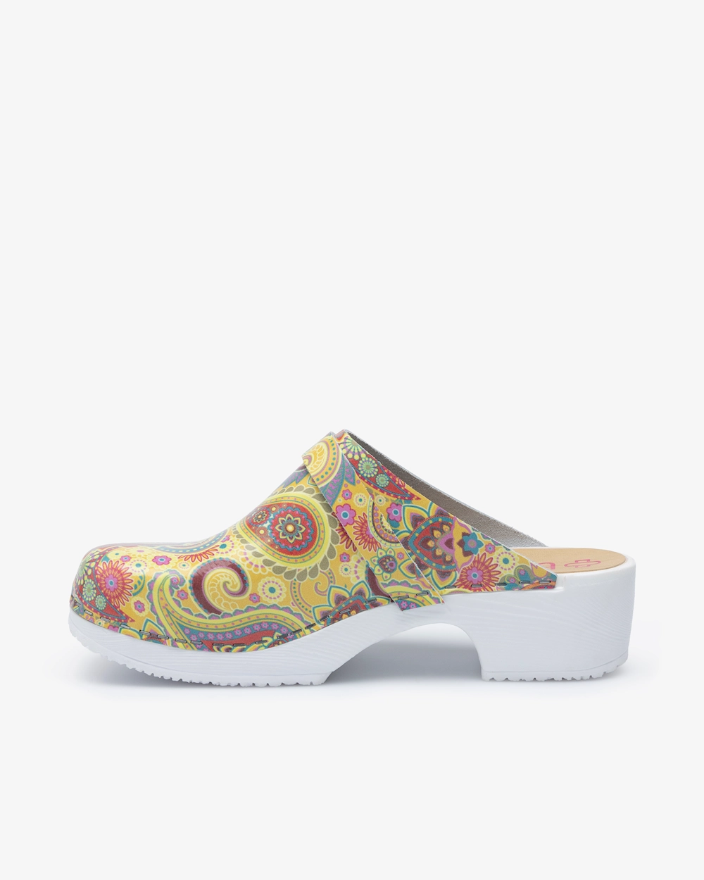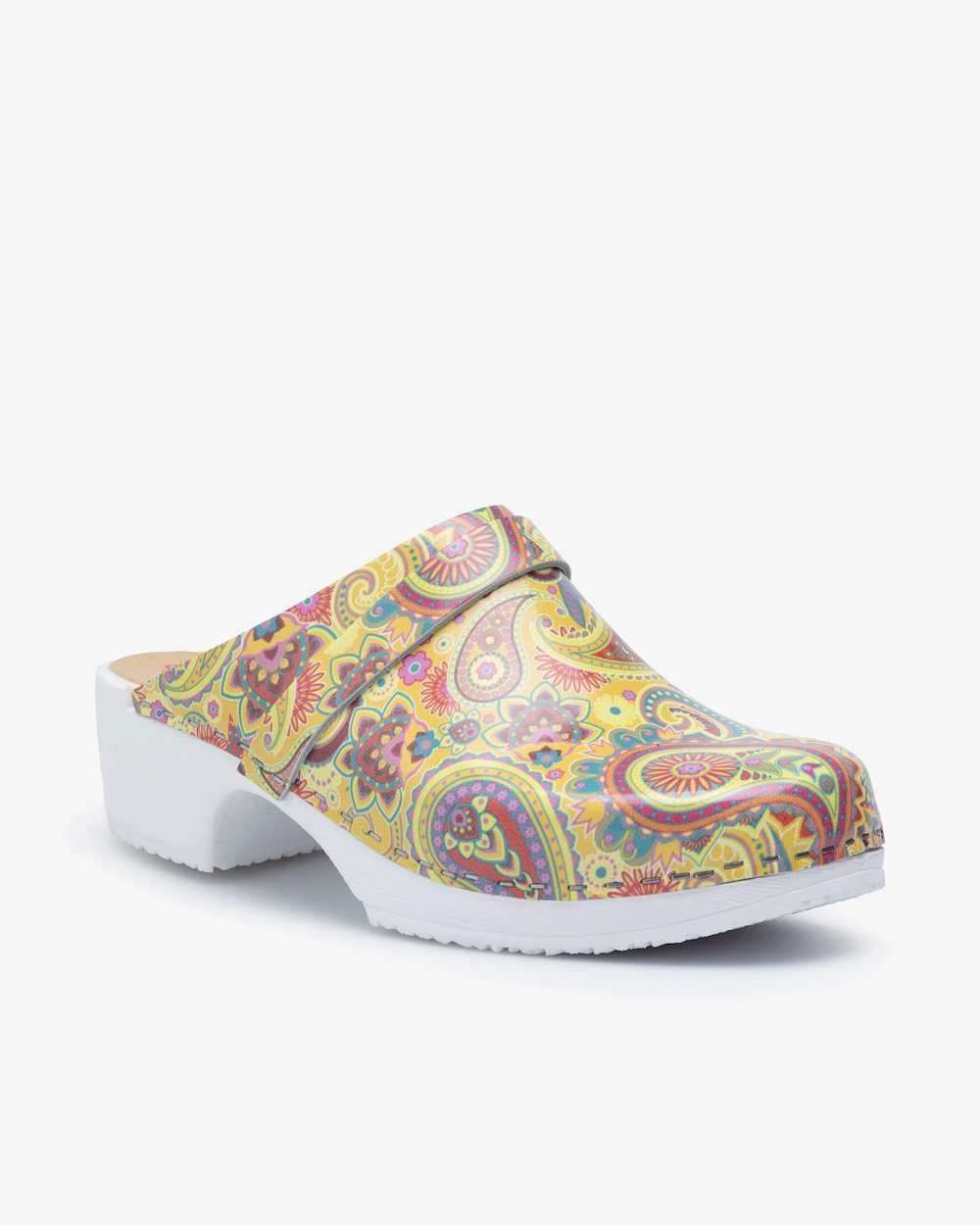 Beez Perinteinen on klassinen puukenkä, saatavana moderneissa väreissä ja kuosissa. Kengän ulkopohja on valmistettu PU-kumista ja jalkapeti puuviilusta - täydellinen yhdistelmä niille, jotka työskentelevät pitkiä vuoroja kovilla lattioilla. Kengässä on vahvistettu varvasosa, joka suojaa kevyiltä iskuilta. PU-päällisen ansiosta voit helposti puhdistaa ja pyyhkiä kengät - täydellinen valinta sinulle, joka työskentelet hoitoalalla.