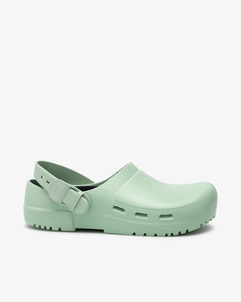 Birkenstock Birki Air 2.0 on täydellinen työpistokas terveydenhuollon ammattilaisille. Anatomisesti muotoillulla PU-välipohjalla (polyuretaani) ja mikrokuituvälisellä mukavuus on optimaalinen pitkien työvuorojen aikana. Antistaattinen ja öljyn- ja rasvankestävä pohja takaa turvallisuuden ja vakauden. Pistokkaassa on sivulla ilmanottoaukot, jotka pitävät jalkasi viileinä ja raikkaina. Säädettävä kantahihna tarjoaa yksilöllisen istuvuuden ja lisätuen, mikä tekee Birki Air 2.0 -pistokkaista sekä toimivan että mukavan ratkaisun. Täydellinen valinta niille, jotka arvostavat korkeaa laatua ja ergonomiaa työympäristössä.