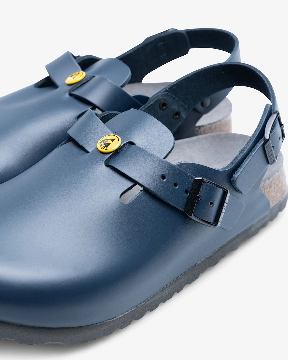Birkenstock Tokio ESD estää sähköpurkauksia ja sitä voidaan käyttää suosiolla sähköteknisissä ammateissa. Erityisesti kehitetyn ESD-pohjan ansiosta kenkä tarjoaa jatkuvia mikropurkauksia, mikä suojaa sekä yksilöä että sähköisiä komponentteja.