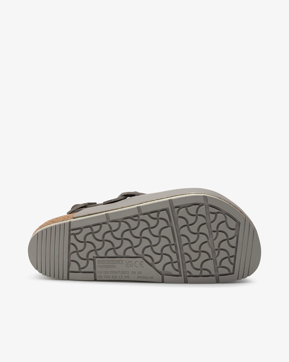 Birkenstockin Tokio PRO -sandaali tarjoaa täydellisen yhdistelmän mukavuutta ja turvallisuutta terveydenhuollon ammattilaisille, jotka arvostavat laatua ja toimivuutta. Anatomisesti muotoiltu mokkanahkainen korkki-lateksivälipohja yhdistettynä pehmustettuun EVA-välipohjaan takaa optimaalisen mukavuuden pitkissä työvuoroissa. Sandaalin päällinen on valmistettu PU-pinnoitetusta luonnonnahasta kestävyyden takaamiseksi. Öljyn- ja rasvankestävällä kumipohjalla sekä kantahihnalla ja muilla säädettävillä hihnoilla varustettu kenkä on sekä käytännöllinen että turvallinen. EN iso 20347:2012 -standardin (SRA-luokka) mukaisesti testattu luistamaton rakenne tekee siitä ihanteellisen työympäristöihin, joissa turvallisuus on keskiössä.