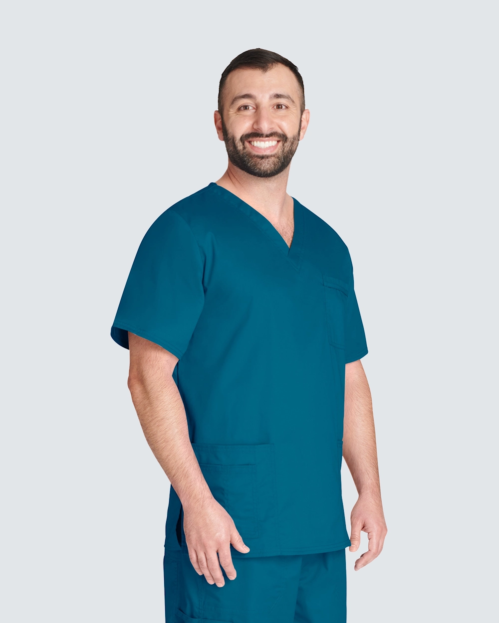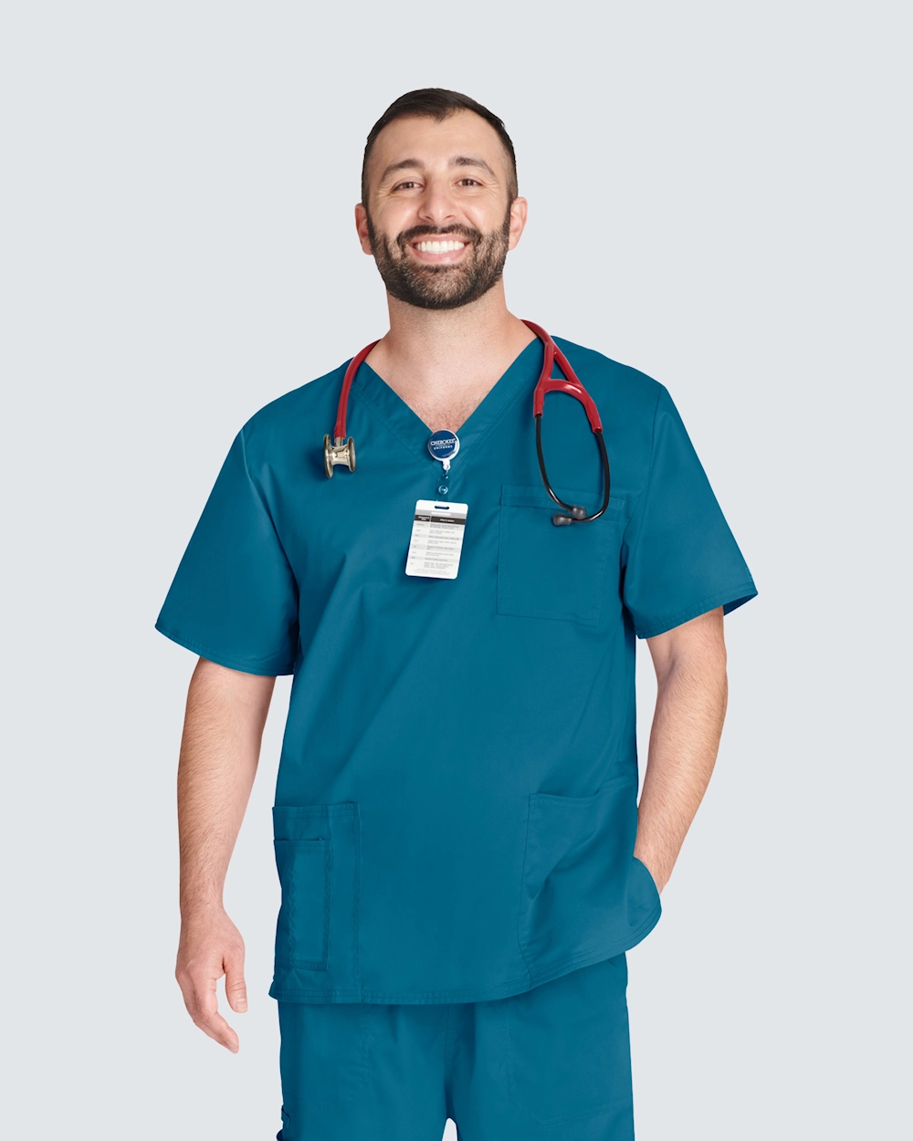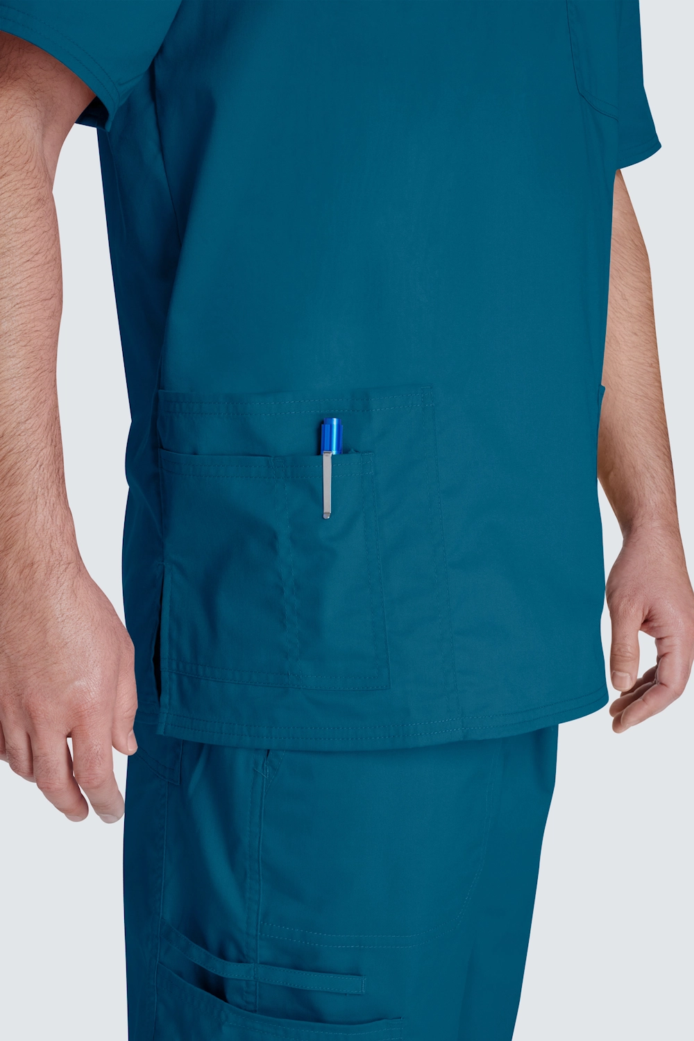 Etsitkö toimivia ja tyylikkäitä työvaatteita? Tämä hoitajanpaita v-pääntiellä tarjoaa optimaalisen mukavuuden ja joustavuuden kaksisuuntaisella joustollaan ja klassisella istuvuudellaan unisex-mallissa. Neljä käytännöllistä taskua tarjoavat runsaasti säilytystilaa työvälineillesi, ja siinä on myös instrumentti- ja puhelintasku. Täydellinen terveydenhuollon työntekijöille, jotka haluavat helposti hoidettavan hoitajanpaidan hengittävästä materiaalista.