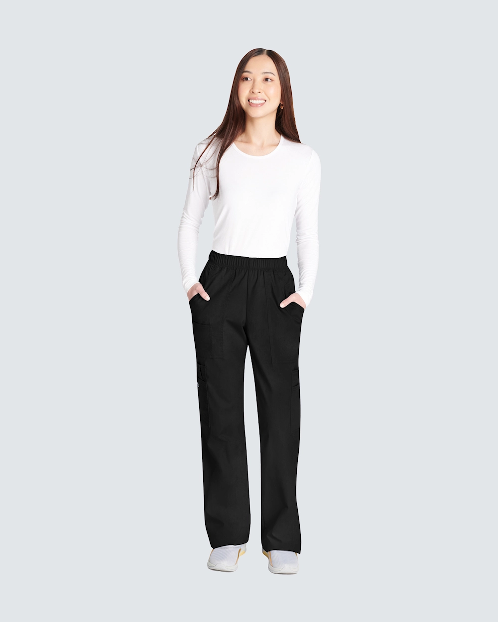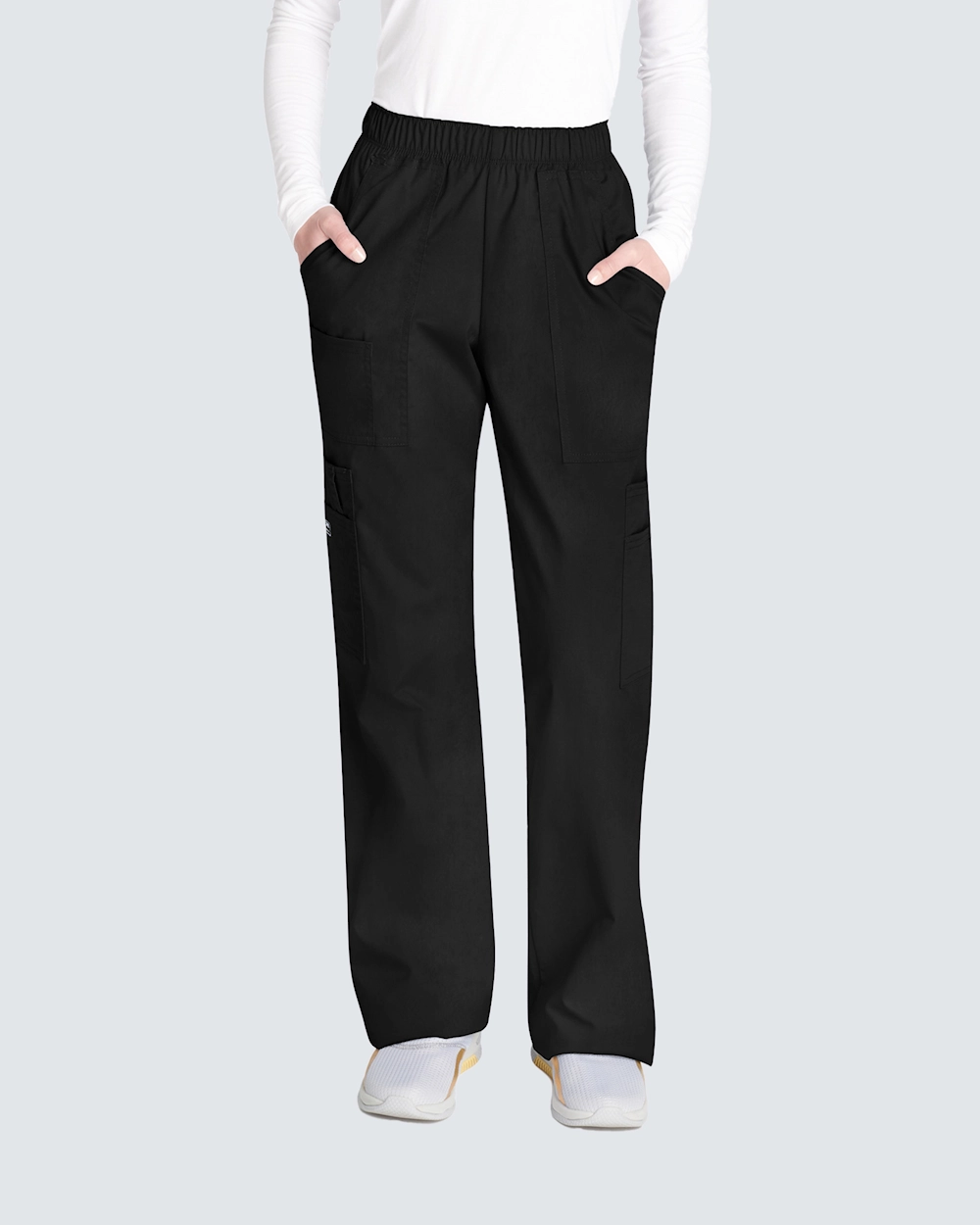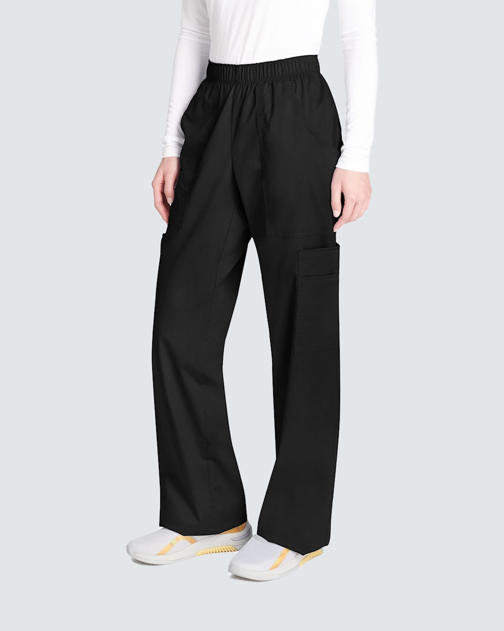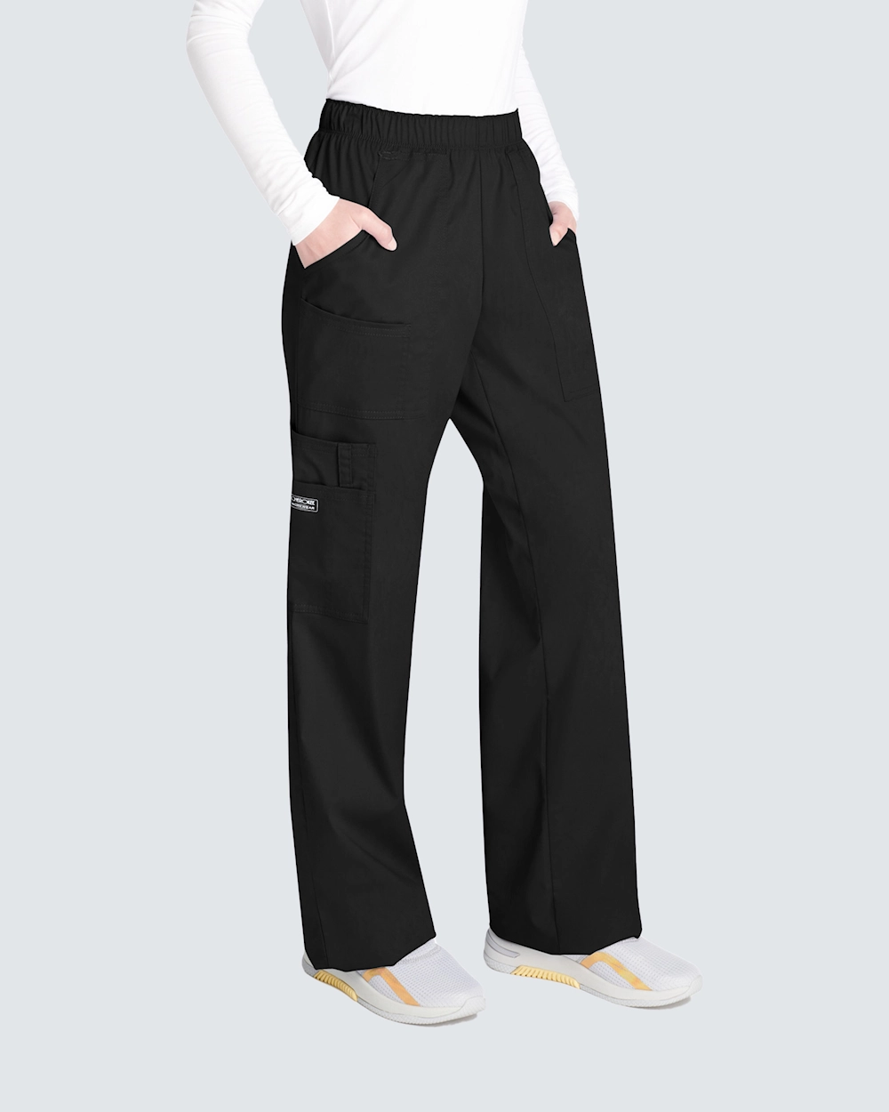 Cherokee Pull-on -reisitaskuhousut tarjoavat täydellisen yhdistelmän toiminnallisuutta ja mukavuutta terveydenhuollon ammattilaisille. Näissä työhousuissa on pehmeä kuminauha tavallisen korkealla vyötäröllä ja suora istuvuus. Housujen lahkeenpituus on säädettävissä ja se voidaan mukauttaa tarpeisiisi. Seitsemän käytännöllistä taskua tarjoavat tilaa kaikille tarvittaville työkaluille ja apuvälineille. Kestävä ja hengittävä kaksisuuntainen joustomateriaali.