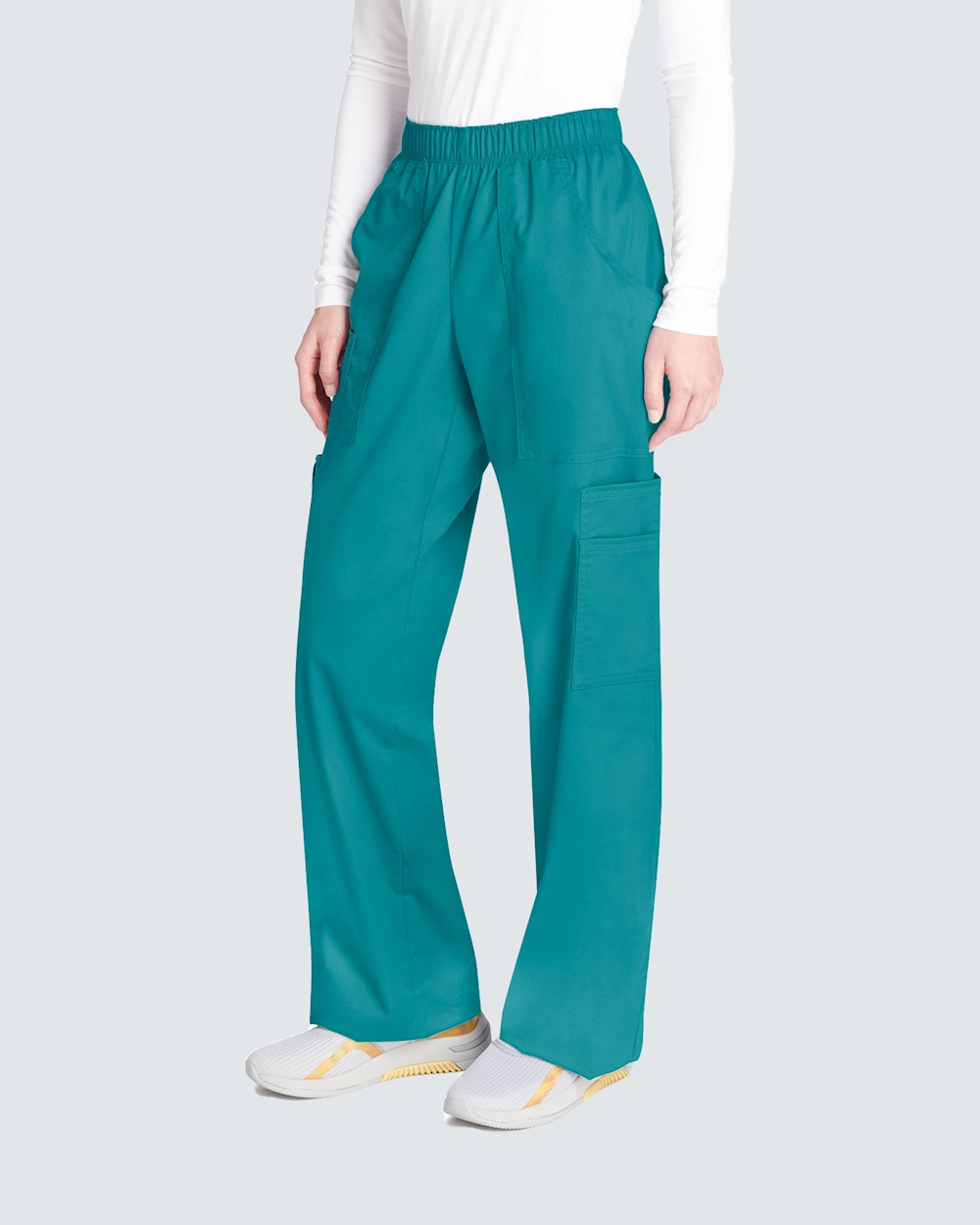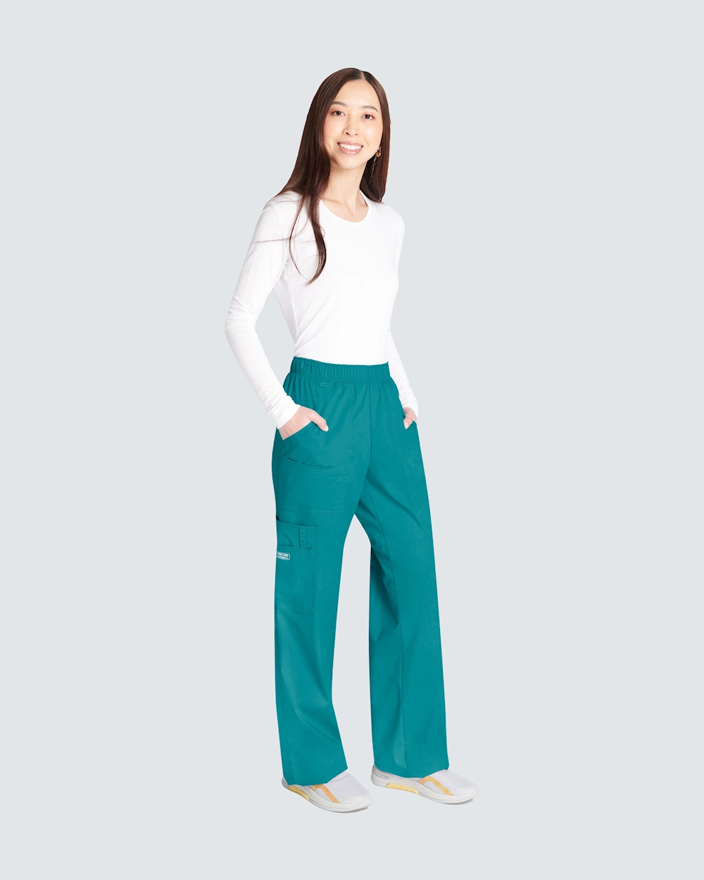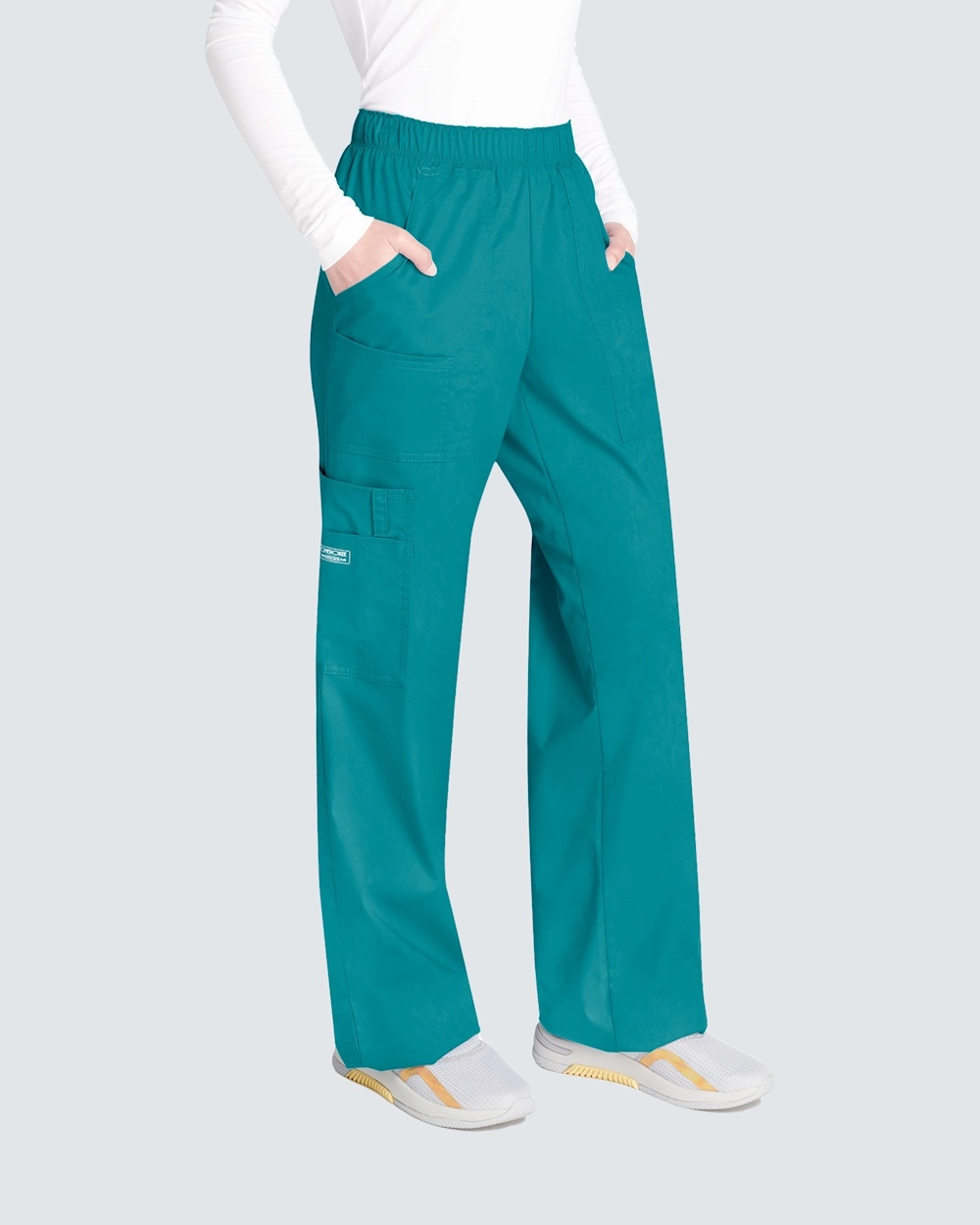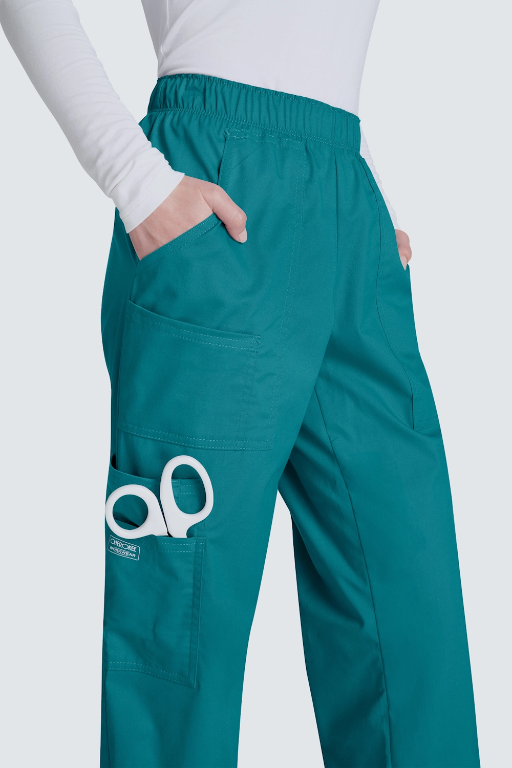 Cherokee Pull-on -reisitaskuhousut tarjoavat täydellisen yhdistelmän toiminnallisuutta ja mukavuutta terveydenhuollon ammattilaisille. Näissä työhousuissa on pehmeä kuminauha tavallisen korkealla vyötäröllä ja suora istuvuus. Housujen lahkeenpituus on säädettävissä ja se voidaan mukauttaa tarpeisiisi. Seitsemän käytännöllistä taskua tarjoavat tilaa kaikille tarvittaville työkaluille ja apuvälineille. Kestävä ja hengittävä kaksisuuntainen joustomateriaali.