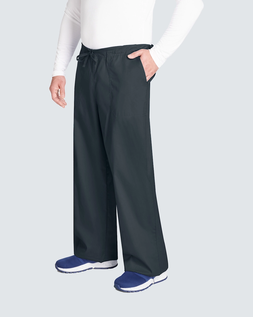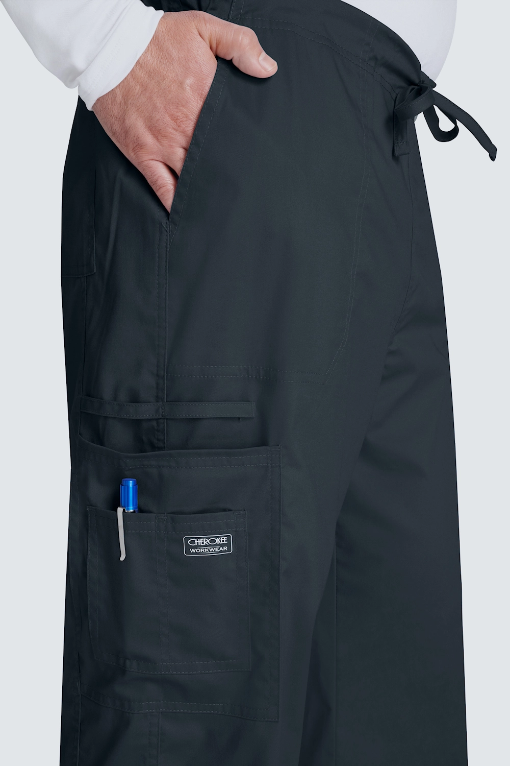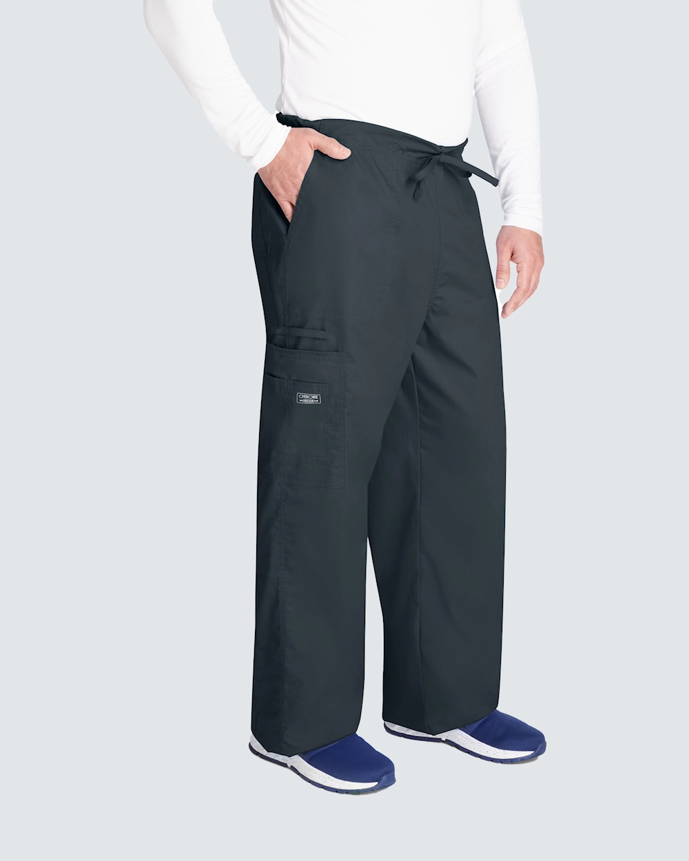 Tutustu klassisiin työhousuihin, joissa on suora istuvuus, tavallisen korkea vyötärö sekä joustava vyötärönauha kiristysnyörillä. Näissä unisex-housuissa on yhteensä viisi taskua, jotka tarjoavat runsaasti säilytystilaa tarvittaville varusteille ja apuvälineille. Täydellinen kaikille, jotka haluavat pehmeät, helppohoitoiset ja kestävät työhousut.