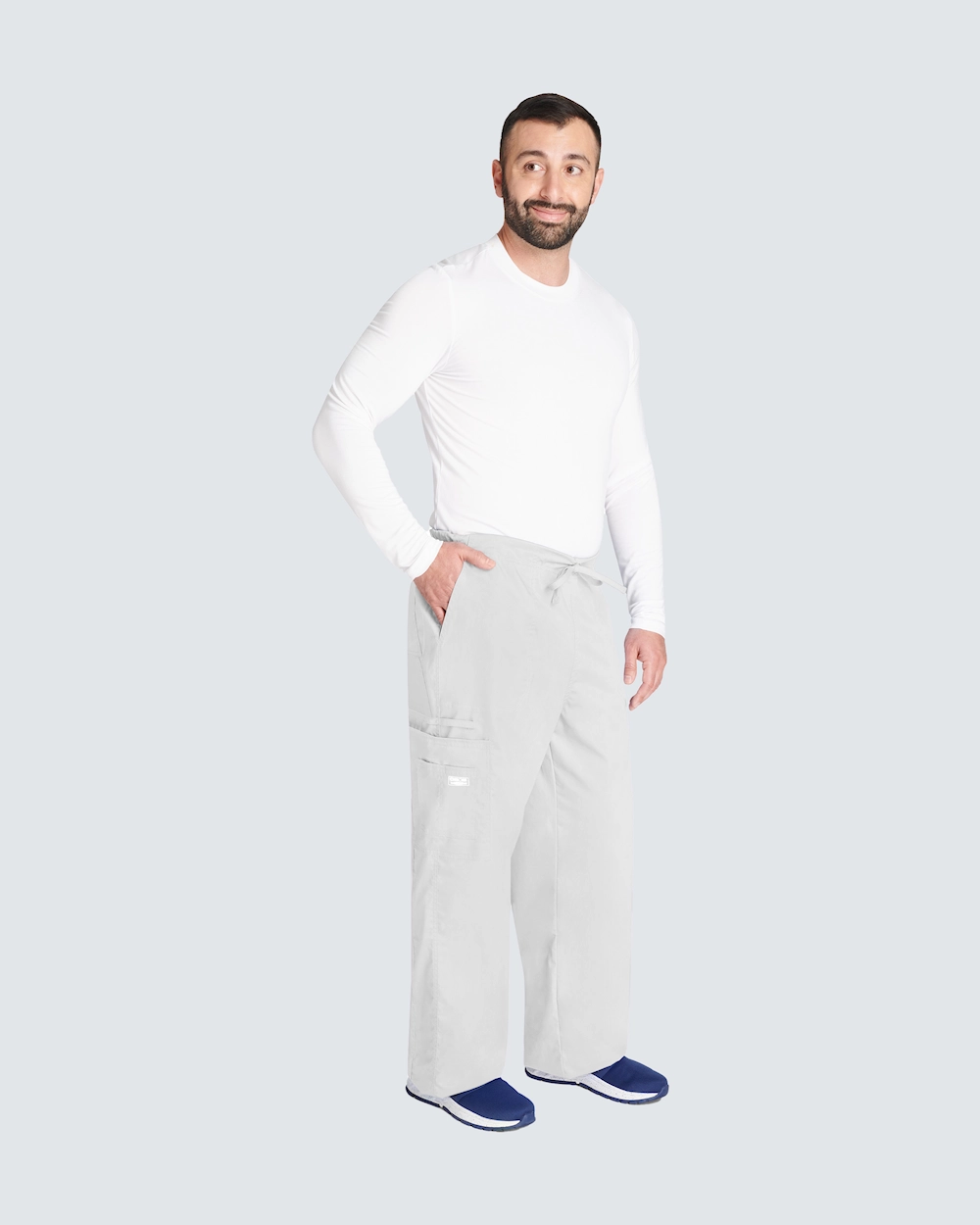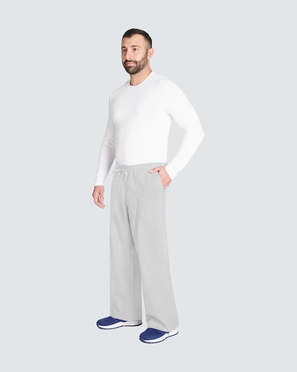 Tutustu klassisiin työhousuihin, joissa on suora istuvuus, tavallisen korkea vyötärö sekä joustava vyötärönauha kiristysnyörillä. Näissä unisex-housuissa on yhteensä viisi taskua, jotka tarjoavat runsaasti säilytystilaa tarvittaville varusteille ja apuvälineille. Täydellinen kaikille, jotka haluavat pehmeät, helppohoitoiset ja kestävät työhousut.
