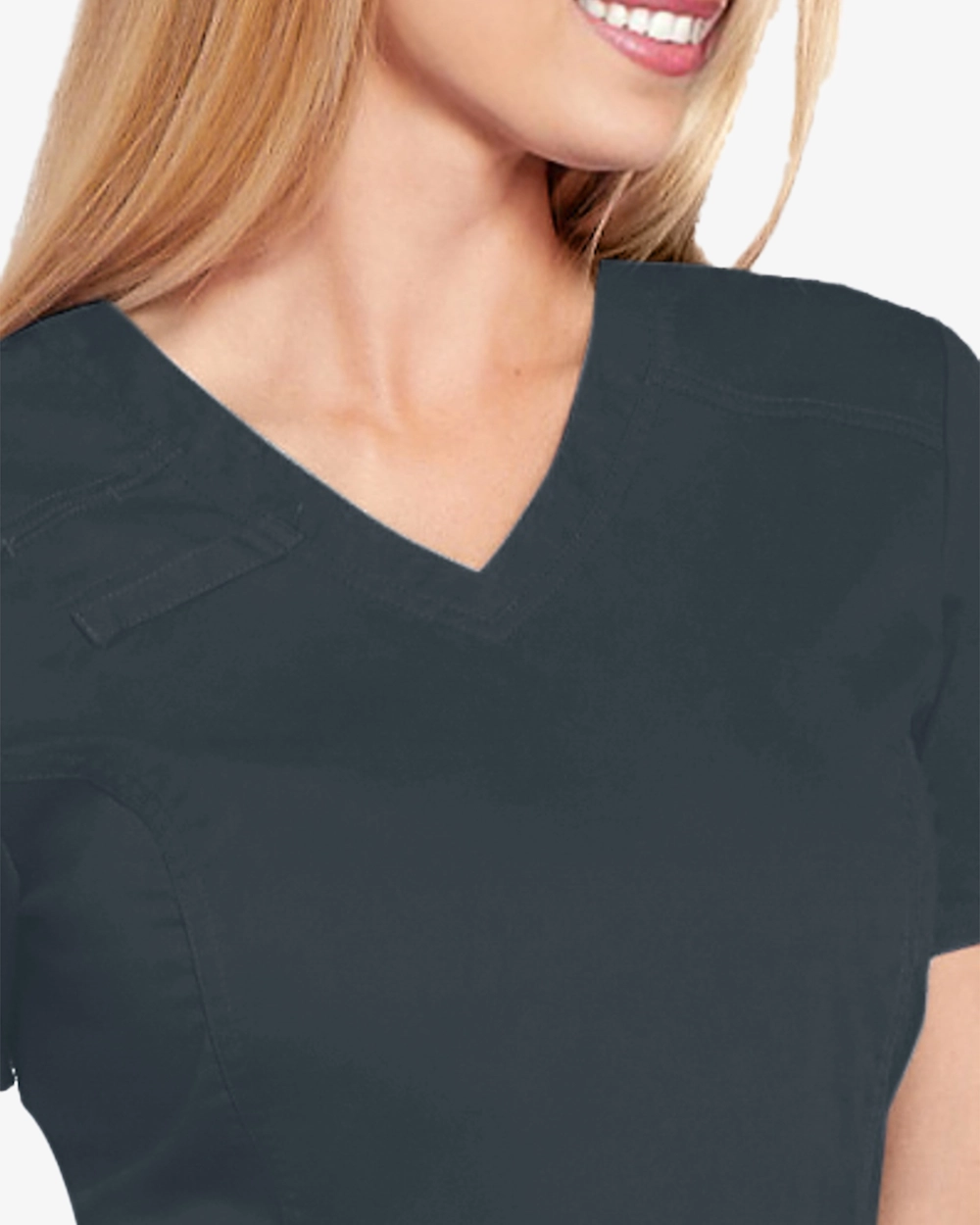 - V-pääntie tunika, jossa on käytännöllinen olkapäällinen edessä