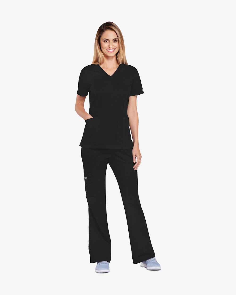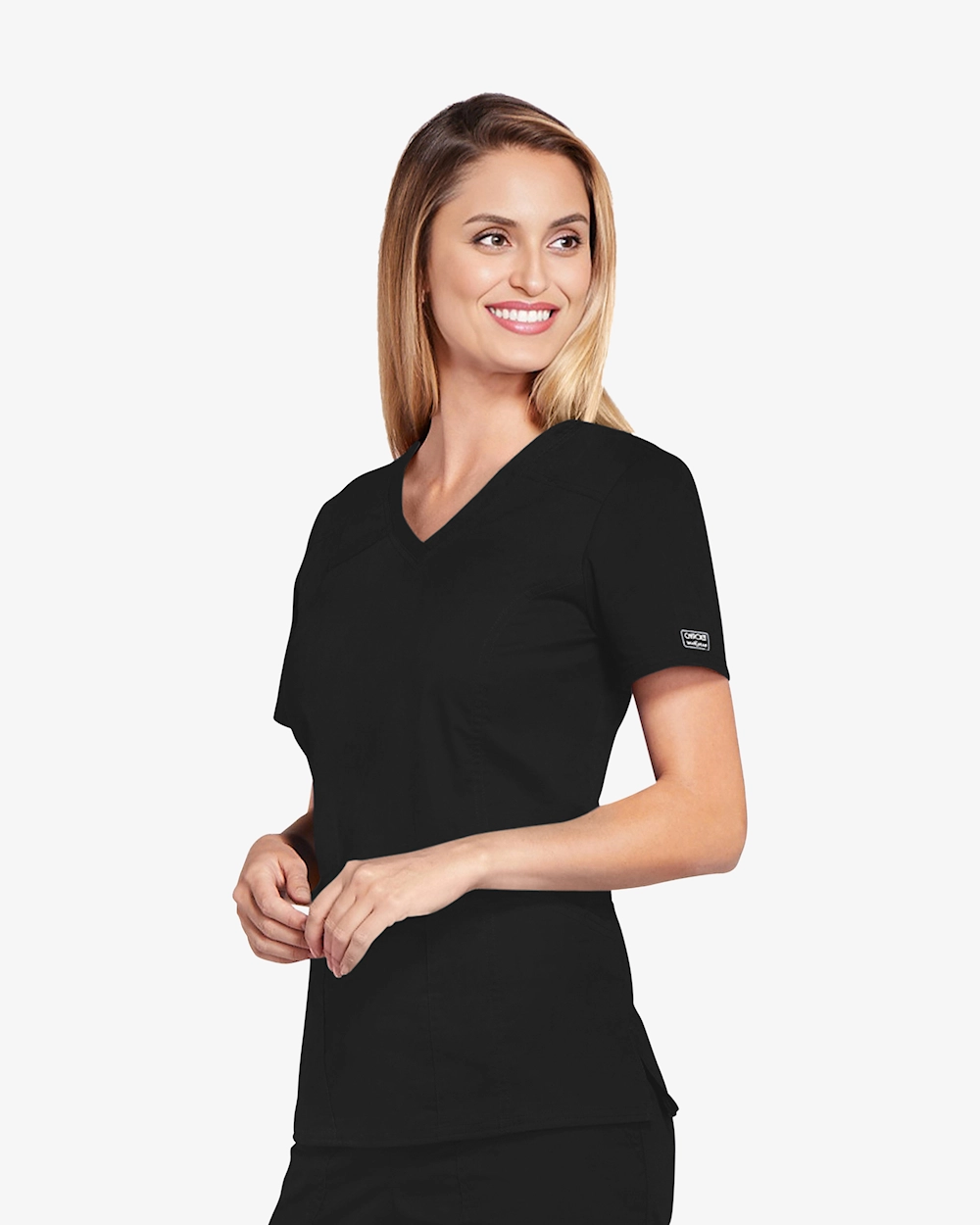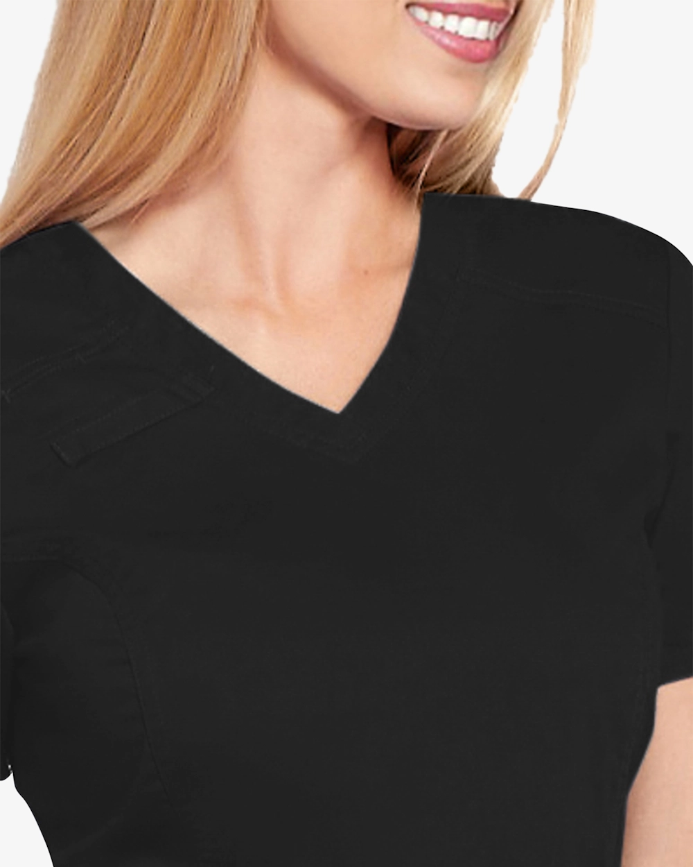 Tunika, jossa yhdistyvät toiminnallisuus ja moderni tyyli ammattimaiseen työpäivään. Tässä 2-suuntaisella stretchillä varustetussa V-pääntie-tunikassa on moderni klassinen istuvuus ja käytännöllisiä yksityiskohtia, kuten olkapääjakku, henkilökorttiteline, stetoskooppilenkki ja useita fiksusti sijoitettuja taskuja. Sivuhalkiot ja kaksinkertaiset ompeleet lisäävät liikkuvuutta ja kestävyyttä, ja prinsessasaumat korostavat istuvaa siluettia. Selän pituus 66 cm.