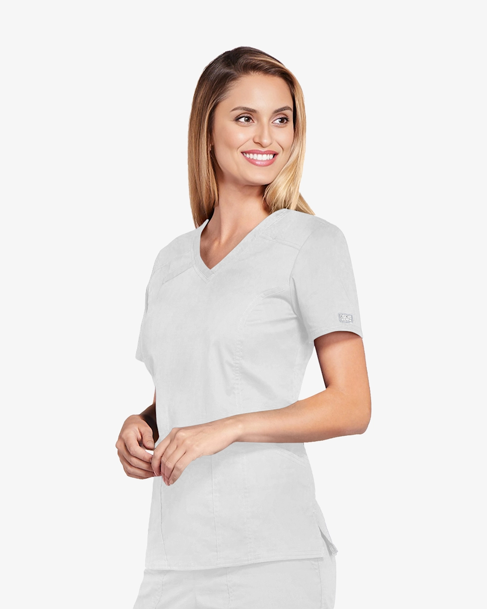 Tunika, jossa yhdistyvät toiminnallisuus ja moderni tyyli ammattimaiseen työpäivään. Tässä 2-suuntaisella stretchillä varustetussa V-pääntie-tunikassa on moderni klassinen istuvuus ja käytännöllisiä yksityiskohtia, kuten olkapääjakku, henkilökorttiteline, stetoskooppilenkki ja useita fiksusti sijoitettuja taskuja. Sivuhalkiot ja kaksinkertaiset ompeleet lisäävät liikkuvuutta ja kestävyyttä, ja prinsessasaumat korostavat istuvaa siluettia. Selän pituus 66 cm.