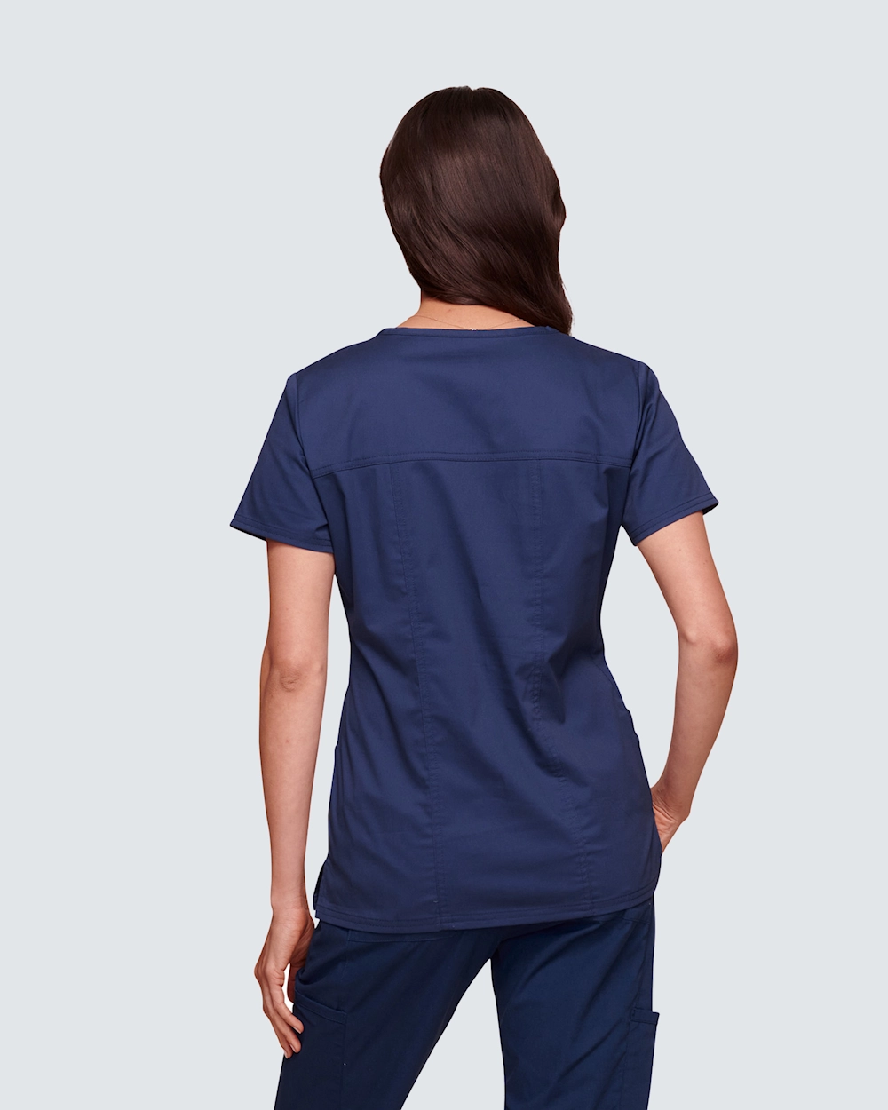 Tämä pehmeä, hieman kaareva v-aukollinen tunika on täydellinen kaikille, jotka etsivät modernia ja tyylikästä työasua.
