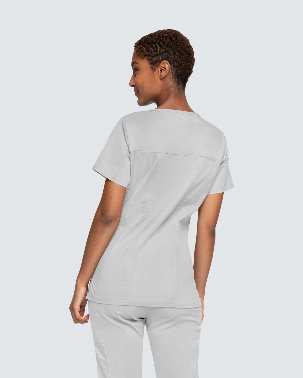 Tämä pehmeä, hieman kaareva v-aukollinen tunika on täydellinen kaikille, jotka etsivät modernia ja tyylikästä työasua.