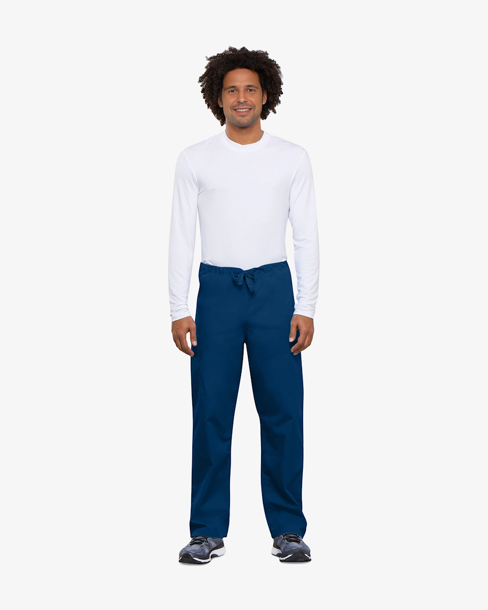 Unisex-työhousuissa yhdistyvät toiminnallisuus ja mukavuus terveydenhuollon ammattilaisille, joilla on korkeat laatuvaatimukset. Luonnollisessa vyötärönauhassa on säädettävä kiristysnauha täydellistä istuvuutta varten ja käytännöllisiä ratkaisuja, kuten takatasku ja tavaratasku, jossa on sisäinen matkapuhelintasku. Likaa hylkivä kangas helpottaa työskentelyä intensiivisten istuntojen aikana. Säären sisäosan pituus: 79 cm. Perinteinen ja tyylikäs muotoilu.