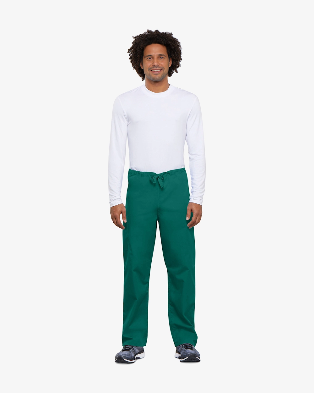Unisex-työhousuissa yhdistyvät toiminnallisuus ja mukavuus terveydenhuollon ammattilaisille, joilla on korkeat laatuvaatimukset. Luonnollisessa vyötärönauhassa on säädettävä kiristysnauha täydellistä istuvuutta varten ja käytännöllisiä ratkaisuja, kuten takatasku ja tavaratasku, jossa on sisäinen matkapuhelintasku. Likaa hylkivä kangas helpottaa työskentelyä intensiivisten istuntojen aikana. Säären sisäosan pituus: 79 cm. Perinteinen ja tyylikäs muotoilu.