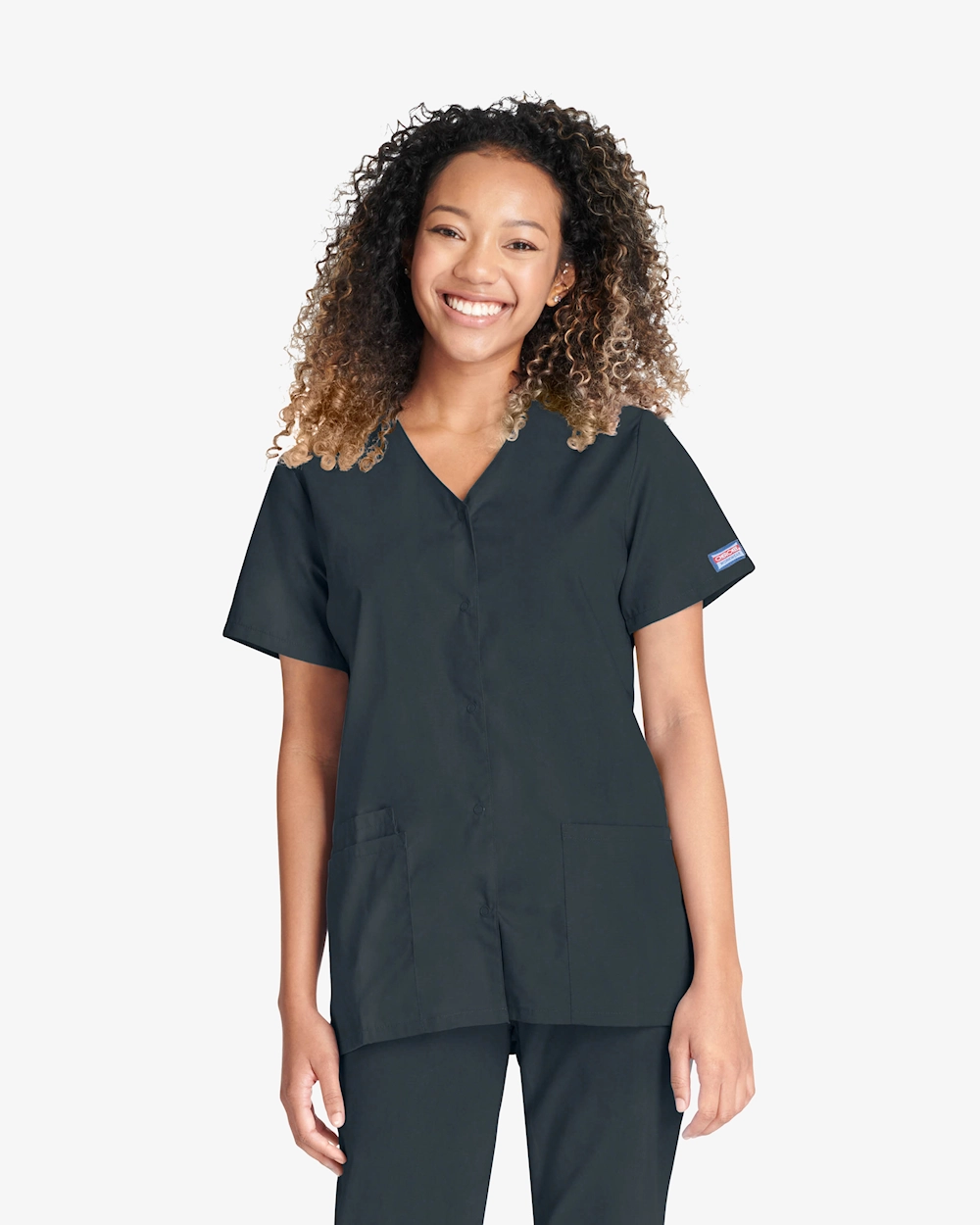 - Lyhythihainen tunika, jossa on painonapit edessä