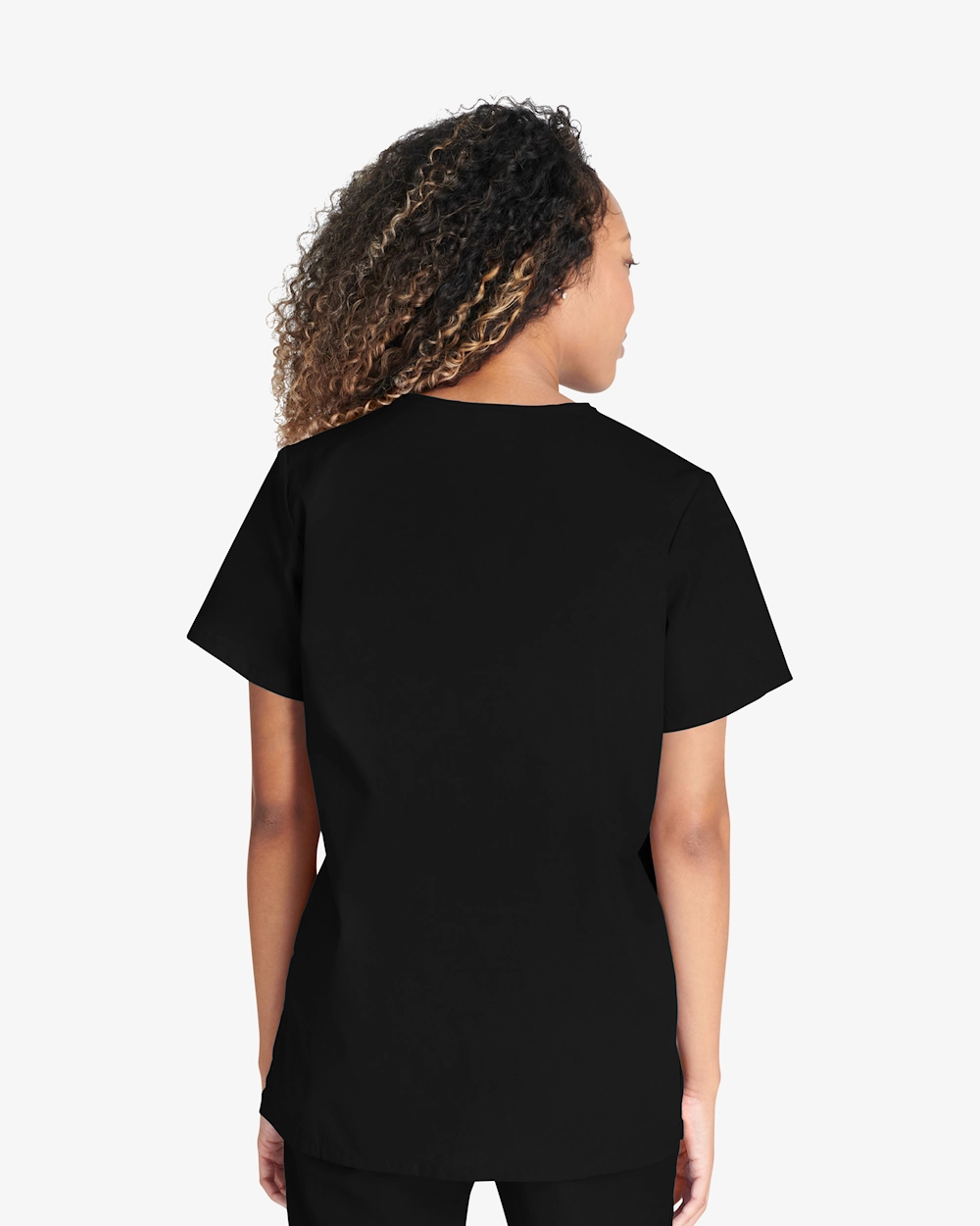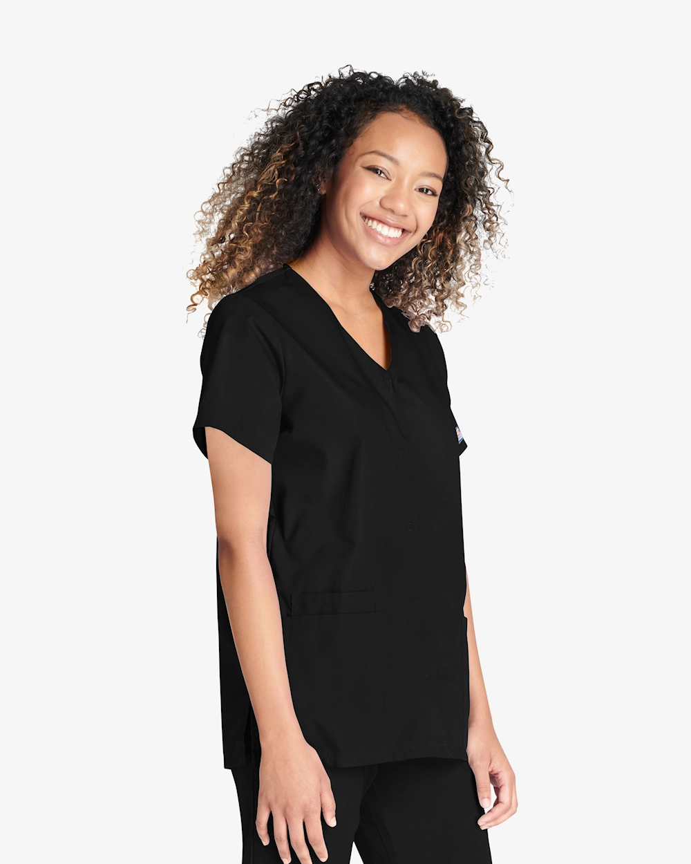 Lyhythihainen tunika klassisessa mallissa, joka sopii erinomaisesti niille, jotka työskentelevät terveydenhuollossa ja etsivät sekä toimivuutta että tyyliä. Käytännöllinen muotoilu, jossa on edessä painonapit, kaksi tilavaa taskua ja erillinen matkapuhelintasku, helpottaa työpäivääsi. Sivuhalkaisijat antavat lisää liikkumisvapautta, ja likaa hylkivän kankaan ansiosta tunika on helppo pitää raikkaana. Selän pituus 67 cm.