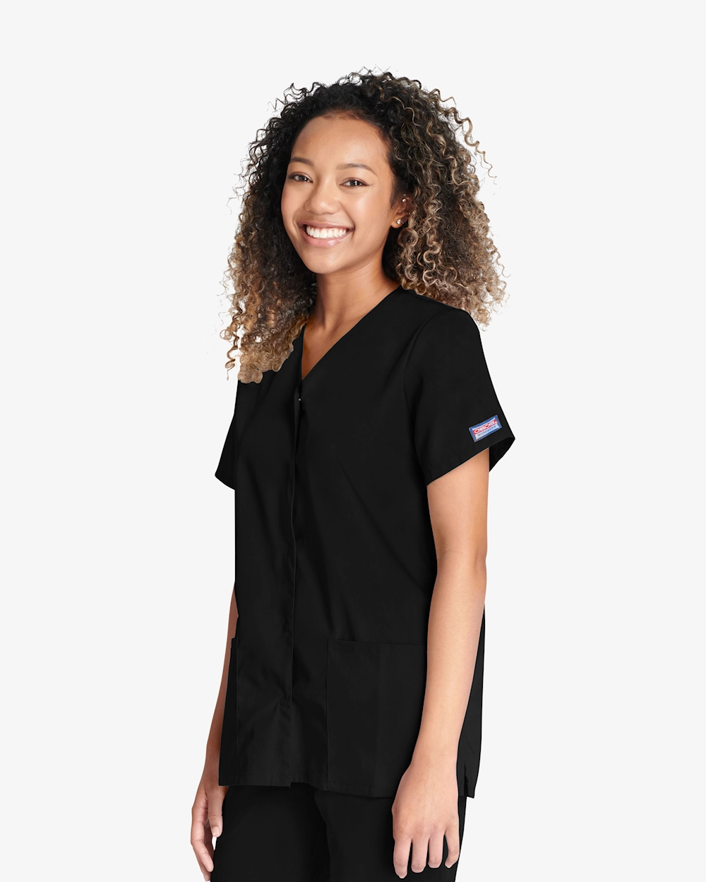 - Lyhythihainen tunika, jossa on painonapit edessä
