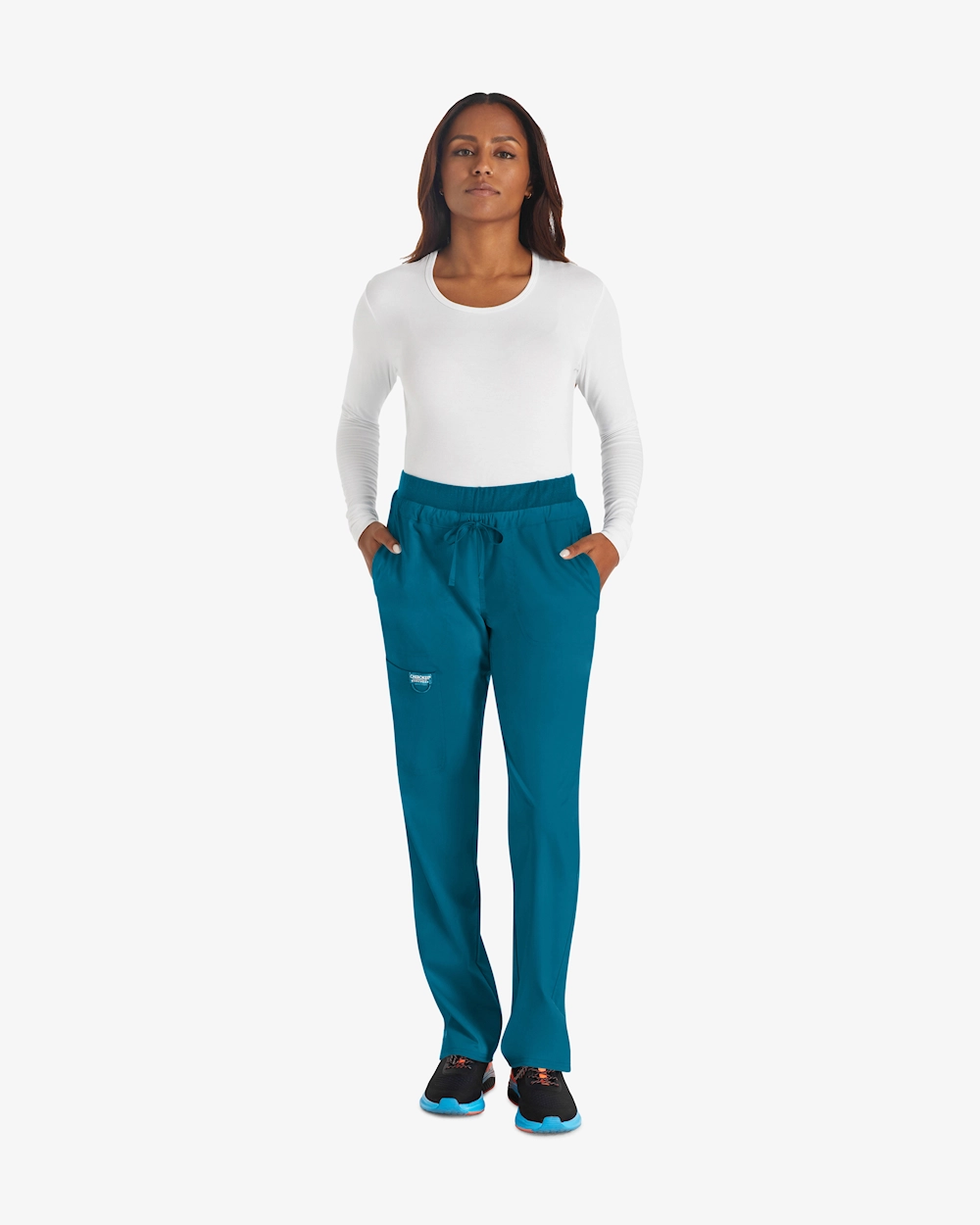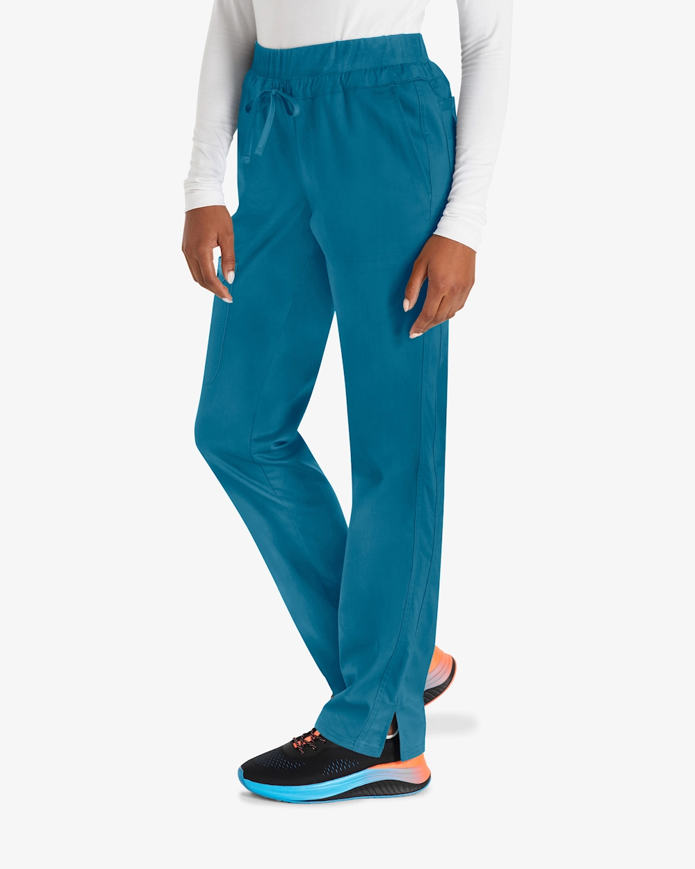 Mukavat työhousut, joissa on keskivyötärö ja kapenevat lahkeet, jotka on suunniteltu vastaamaan terveydenhuollon jokapäiväisiä vaatimuksia. Joustava kangas, jossa on 2-suuntaista stretchiä, tarjoaa selkeää liikkumisvapautta ja mukavuutta pitkien työvuorojen aikana. Housuissa on joustava vyötärö, jossa on kiristysnauha, vinot etutaskut, käytännöllinen rahtitasku ja kaksi takataskua, joissa on älykäs ja helposti saatavilla oleva säilytystila. Säären sisäpituus 79 cm.
