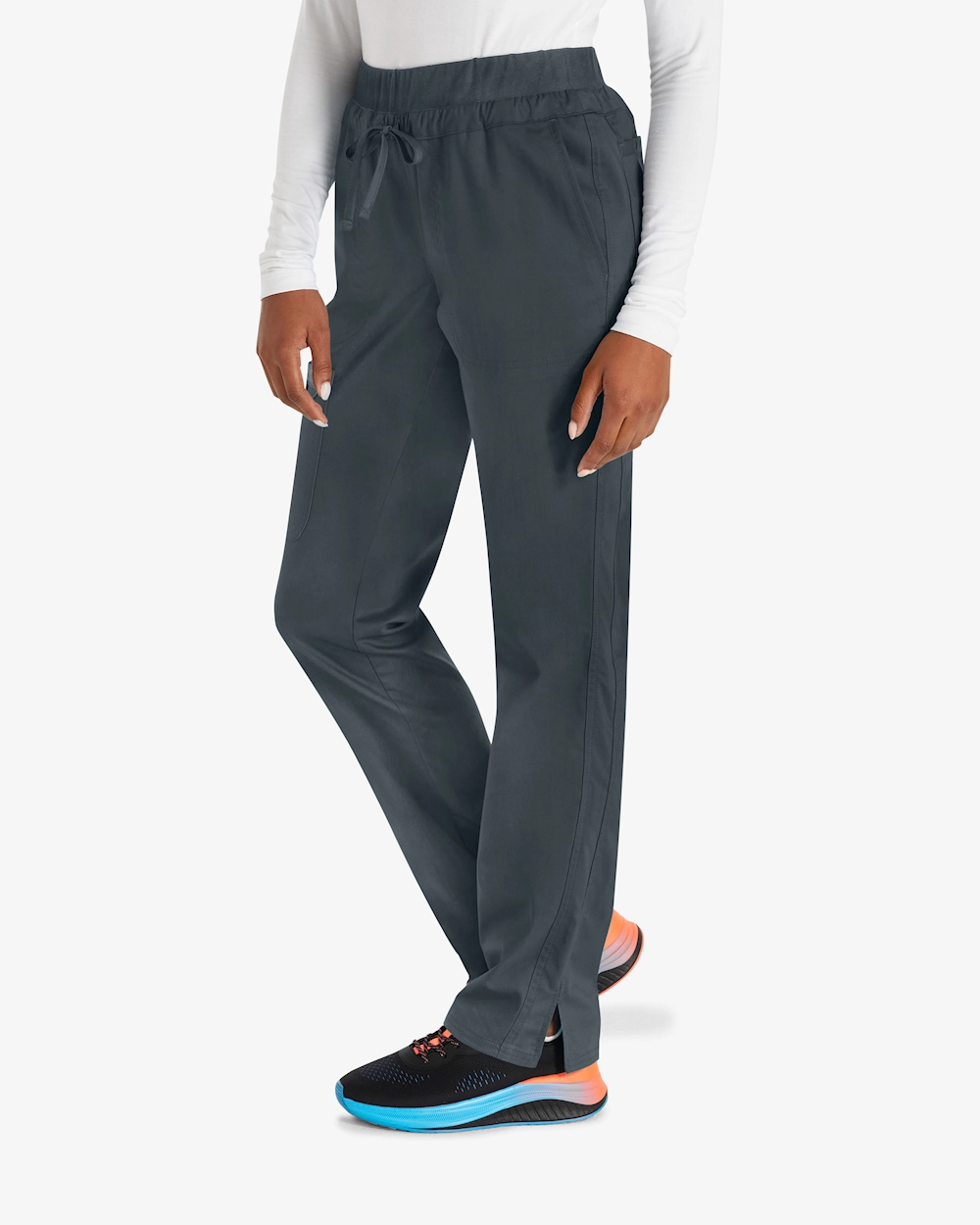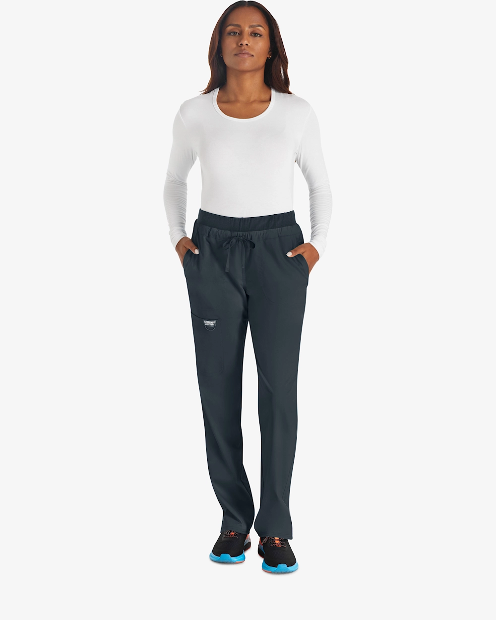 Mukavat työhousut, joissa on keskivyötärö ja kapenevat lahkeet, jotka on suunniteltu vastaamaan terveydenhuollon jokapäiväisiä vaatimuksia. Joustava kangas, jossa on 2-suuntaista stretchiä, tarjoaa selkeää liikkumisvapautta ja mukavuutta pitkien työvuorojen aikana. Housuissa on joustava vyötärö, jossa on kiristysnauha, vinot etutaskut, käytännöllinen rahtitasku ja kaksi takataskua, joissa on älykäs ja helposti saatavilla oleva säilytystila. Säären sisäpituus 79 cm.