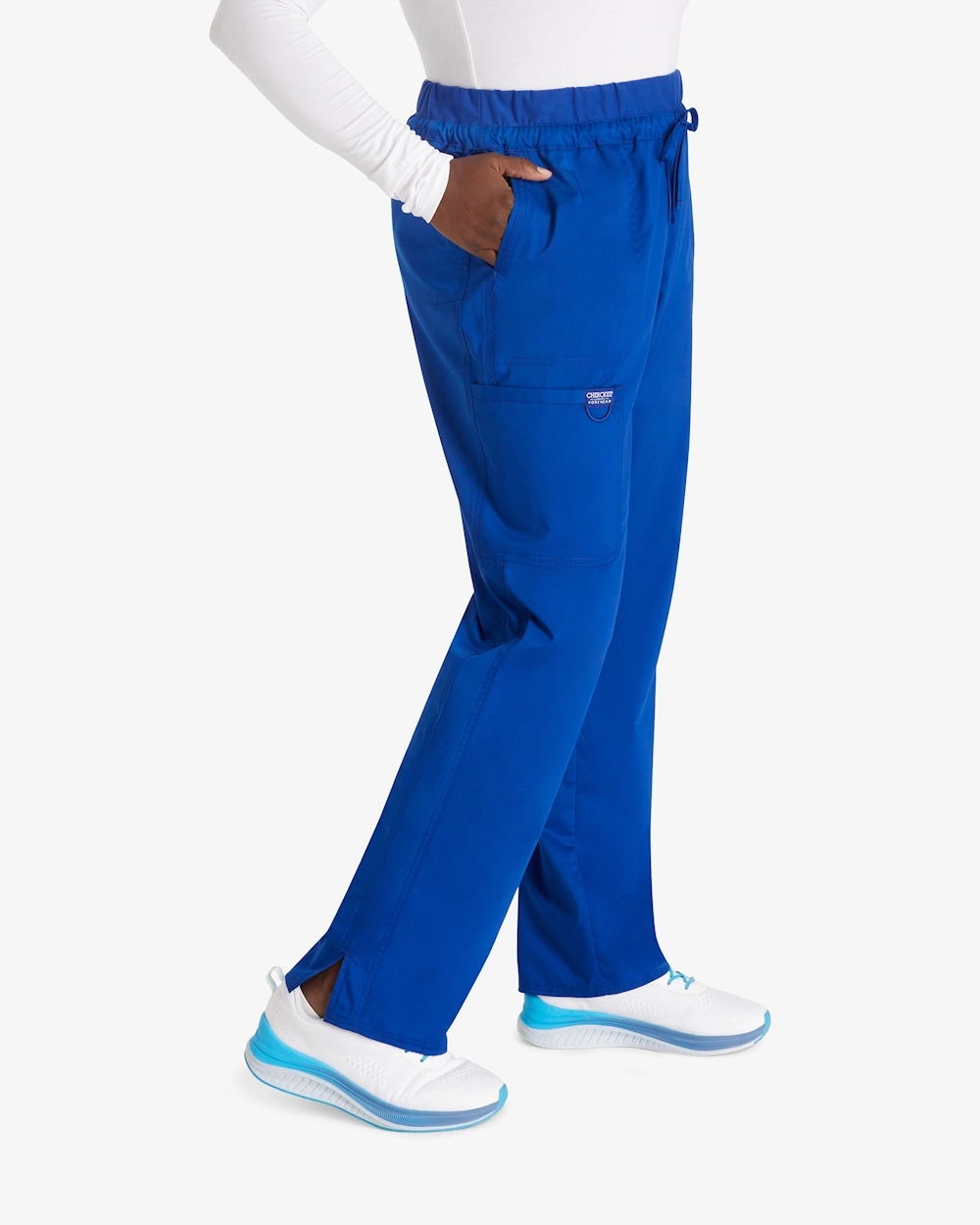 Mukavat työhousut, joissa on keskivyötärö ja kapenevat lahkeet, jotka on suunniteltu vastaamaan terveydenhuollon jokapäiväisiä vaatimuksia. Joustava kangas, jossa on 2-suuntaista stretchiä, tarjoaa selkeää liikkumisvapautta ja mukavuutta pitkien työvuorojen aikana. Housuissa on joustava vyötärö, jossa on kiristysnauha, vinot etutaskut, käytännöllinen rahtitasku ja kaksi takataskua, joissa on älykäs ja helposti saatavilla oleva säilytystila. Säären sisäpituus 79 cm.