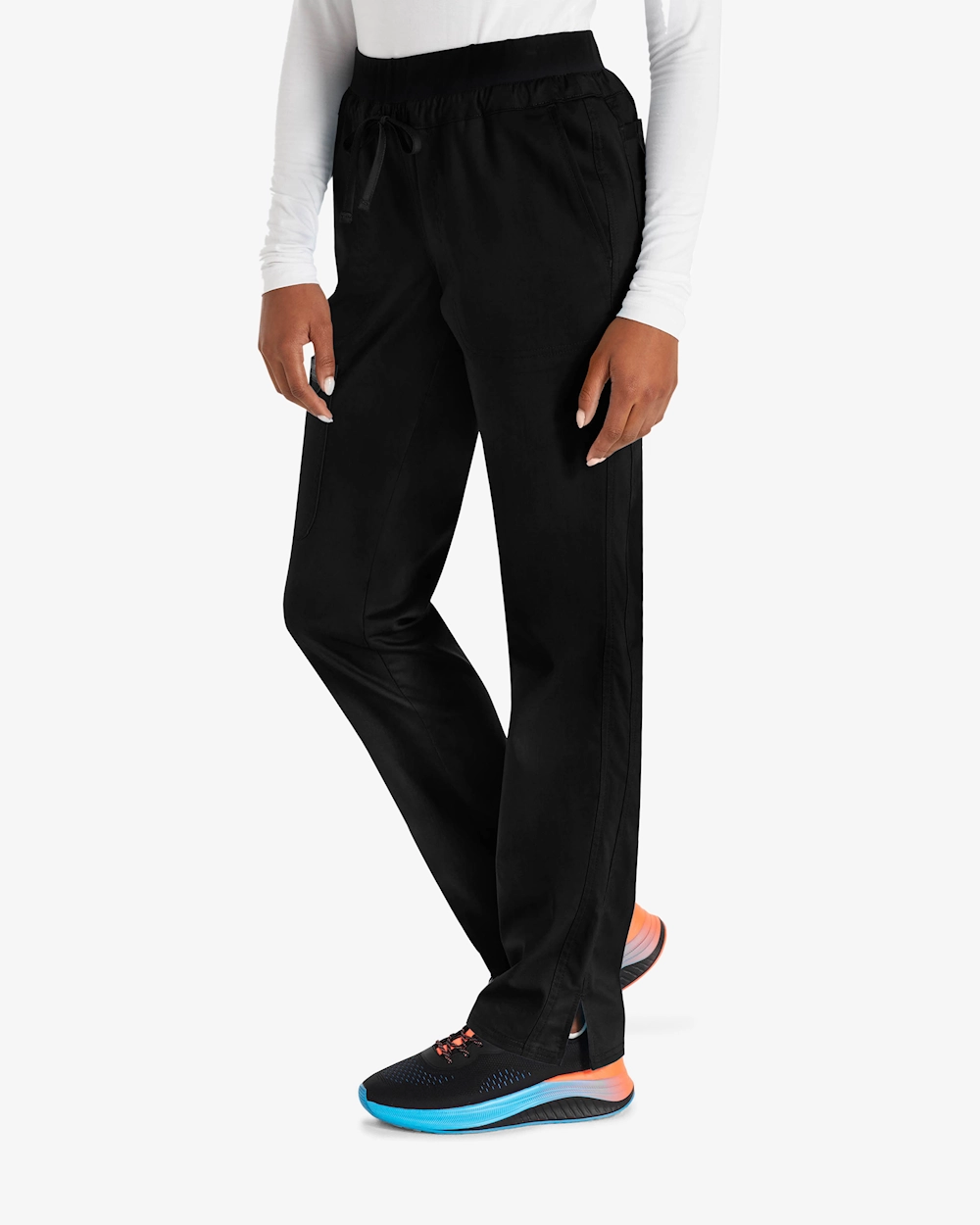 Mukavat työhousut, joissa on keskivyötärö ja kapenevat lahkeet, jotka on suunniteltu vastaamaan terveydenhuollon jokapäiväisiä vaatimuksia. Joustava kangas, jossa on 2-suuntaista stretchiä, tarjoaa selkeää liikkumisvapautta ja mukavuutta pitkien työvuorojen aikana. Housuissa on joustava vyötärö, jossa on kiristysnauha, vinot etutaskut, käytännöllinen rahtitasku ja kaksi takataskua, joissa on älykäs ja helposti saatavilla oleva säilytystila. Säären sisäpituus 79 cm.