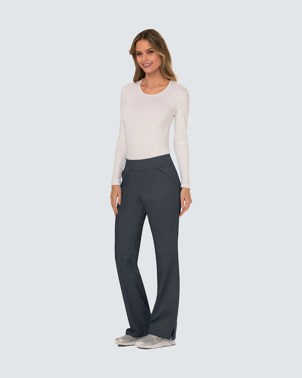 Nykyaikaisissa suoralahkeisissa työhousuissa yhdistyvät tyyli ja toiminnallisuus. Housuissa on tavallisen korkea vyötärö, jossa on leveä neulottu vyötärönauha ja vahvistettu joustinnauha, joka takaa mukavan istuvuuden. Neljässä käytännöllisessä taskussa voit helposti kuljettaa tärkeitä varusteita ja työkaluja. Kestävää ja helppohoitoista materiaalia, jossa on joustoa. Ihanteellinen terveydenhuollon ammattilaisille, jotka etsivät työvaatteistaan sekä mukavuutta että ammattimaista tyyliä.