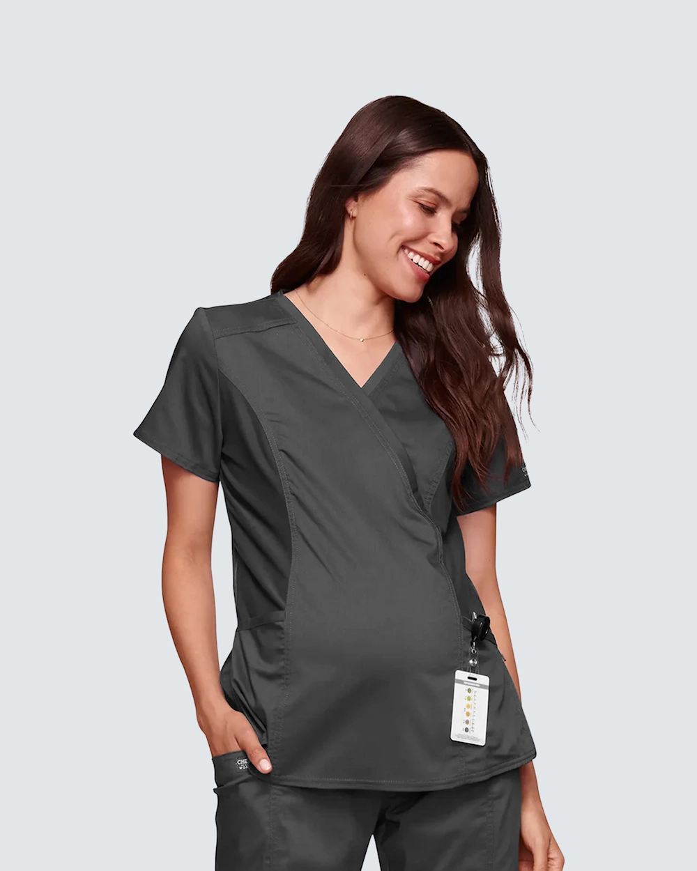 Äitiystunika, jossa on kietaisumalli, on luotu mukavuutta ja toimivuutta varten koko raskauden ajan. Pehmeä neulottu etupaneeli ja vetoketjulla ja verkolla varustetut sivusäleiköt tarjoavat joustavan istuvuuden ja tilaa kasvaa. Tunikassa on kaksi käytännöllistä etutaskua ja harkitut saumat edessä ja takana. Täydellinen valinta niille, jotka haluavat yhdistää tyylin, liikkumisvapauden ja toiminnallisuuden terveydenhuollossa.