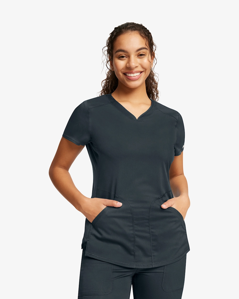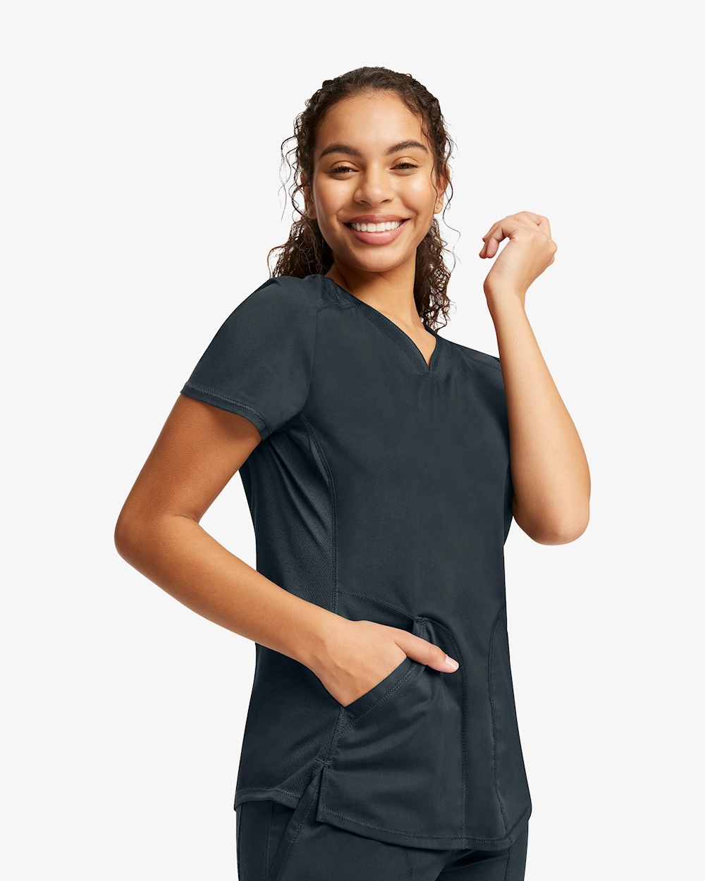 Tässä urheilullisessa naisten tunikassa on moderni klassinen istuvuus, joka tuo sekä tyyliä että liikkumisen vapautta jokapäiväiseen työhön. Hengittävillä verkkopaneeleilla pääntiellä ja sivuilla, kaksisuuntaisella stretchillä ja kahdella käytännöllisellä taskuilla, joissa on instrumenttilenkit, se yhdistää toiminnallisuuden ja mukavuuden. Täydellinen niille, jotka haluavat mukavuutta ja älykästä muotoilua pitkien työvuorojen aikana.
