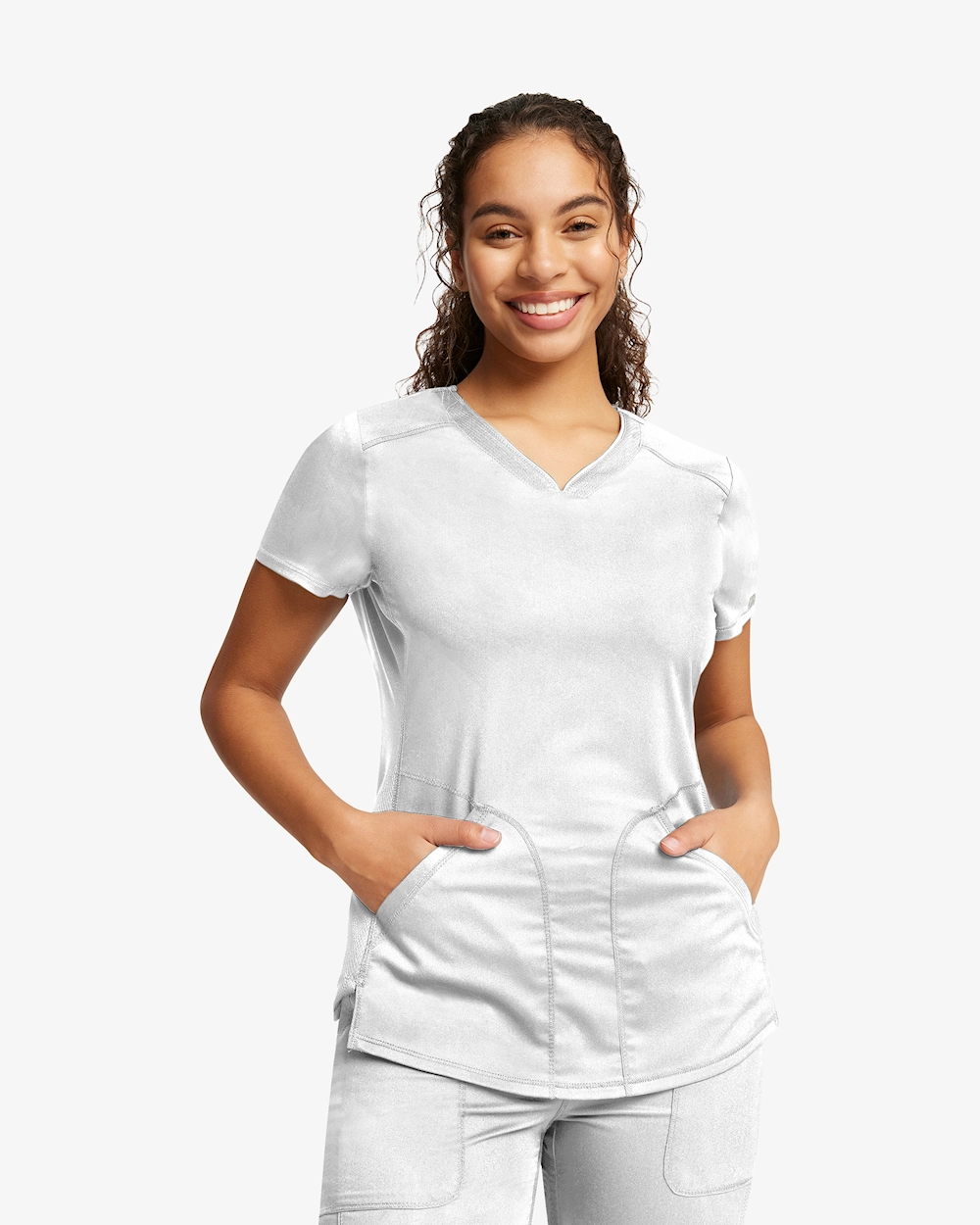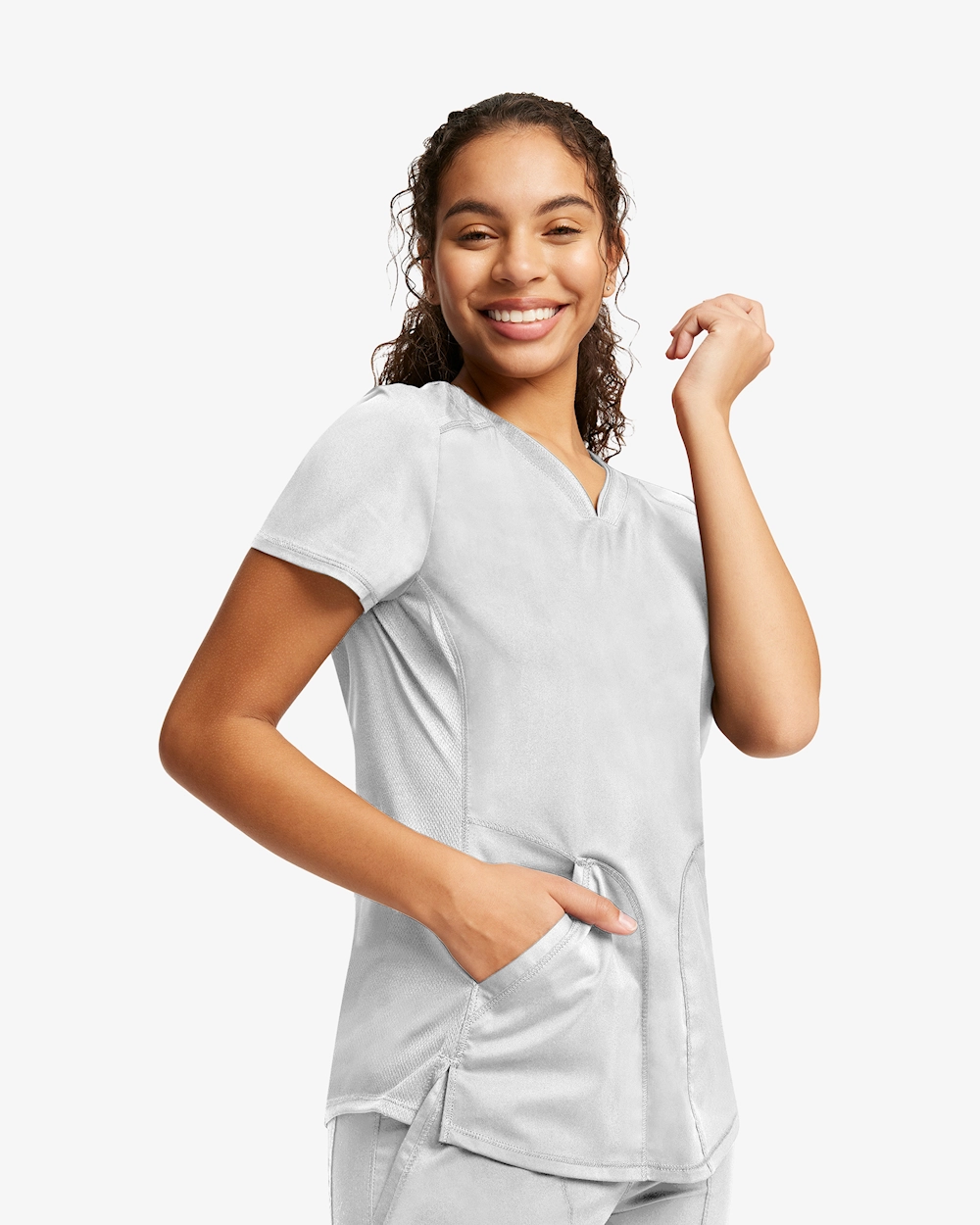Tässä urheilullisessa naisten tunikassa on moderni klassinen istuvuus, joka tuo sekä tyyliä että liikkumisen vapautta jokapäiväiseen työhön. Hengittävillä verkkopaneeleilla pääntiellä ja sivuilla, kaksisuuntaisella stretchillä ja kahdella käytännöllisellä taskuilla, joissa on instrumenttilenkit, se yhdistää toiminnallisuuden ja mukavuuden. Täydellinen niille, jotka haluavat mukavuutta ja älykästä muotoilua pitkien työvuorojen aikana.