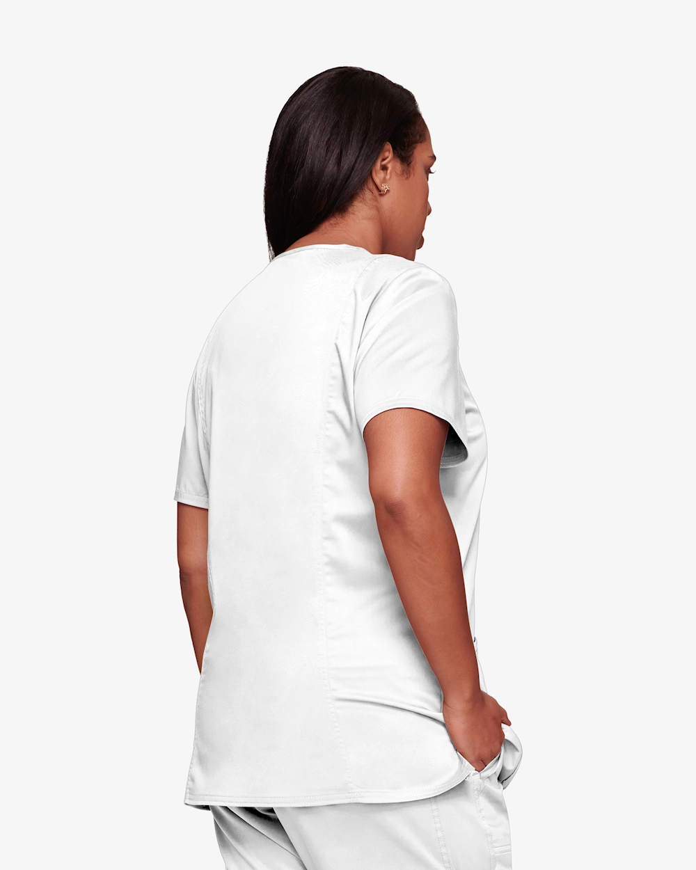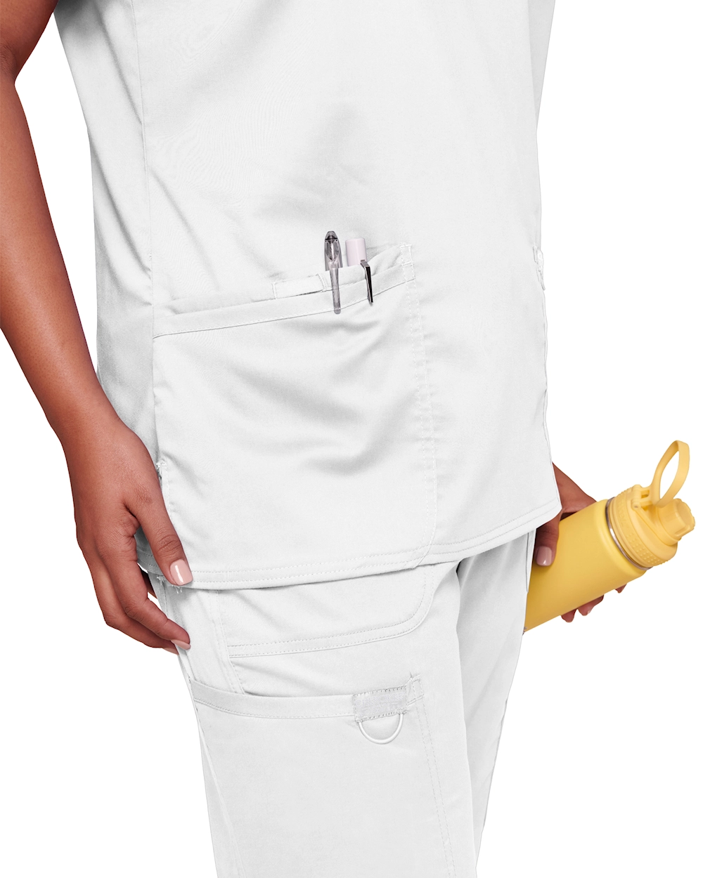 Käytännöllinen ja monipuolinen naisten tunika, jossa on moderni klassinen istuvuus ja v-pääntie, jossa yhdistyvät tyyli ja toiminta. Varustettu useilla läpällisillä taskuilla, instrumenttilenkillä, kynätaskulla, logonauhalla, jossa on bungee-lenkki, ja sivuhalkiot lisäävät liikkumisvapautta. 2-suuntainen stretch ja prinsessasaumat selässä takaavat sekä optimaalisen mukavuuden että imartelevan siluetin. Selän pituus: 69 cm.