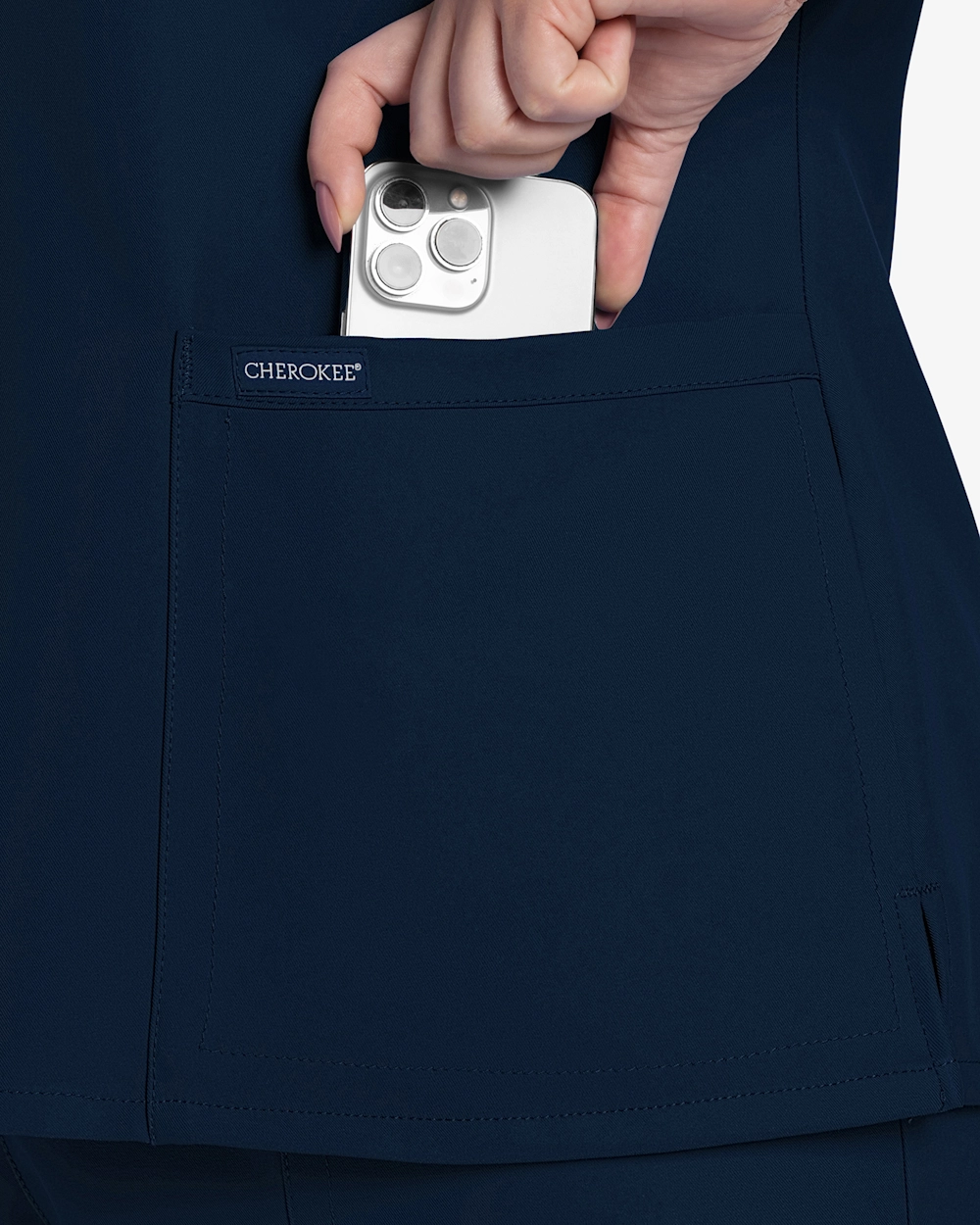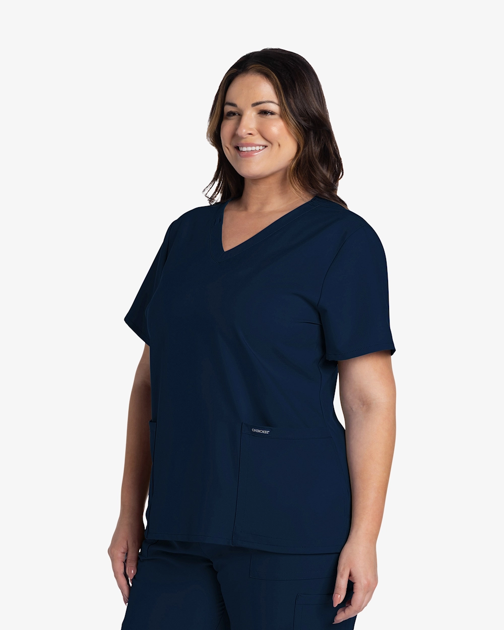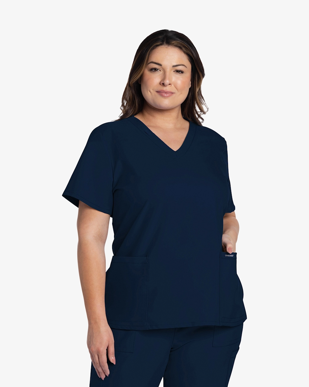 - V-pääntie tunika, jossa on moderni klassinen istuvuus.