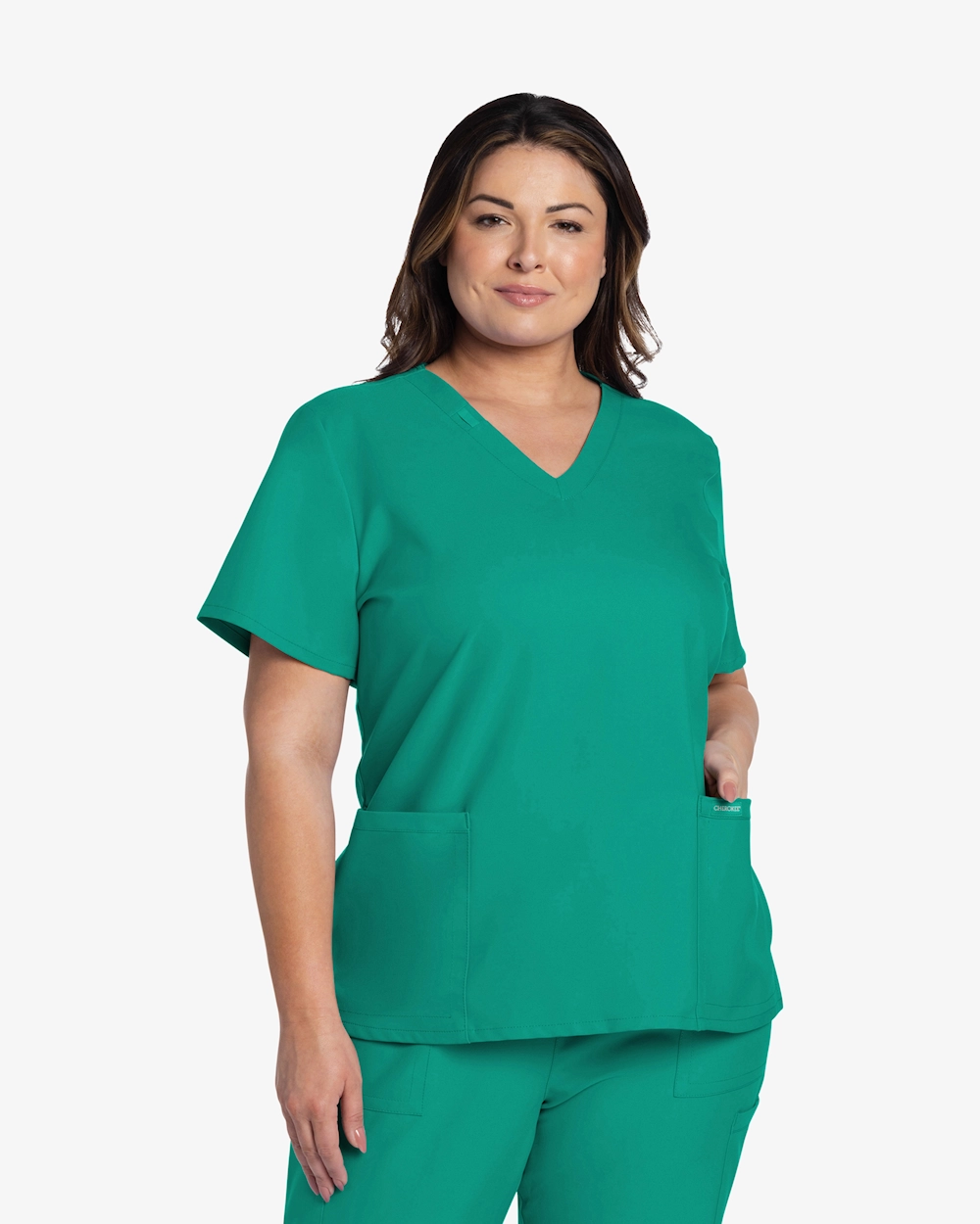 - V-pääntie tunika, jossa on moderni klassinen istuvuus.