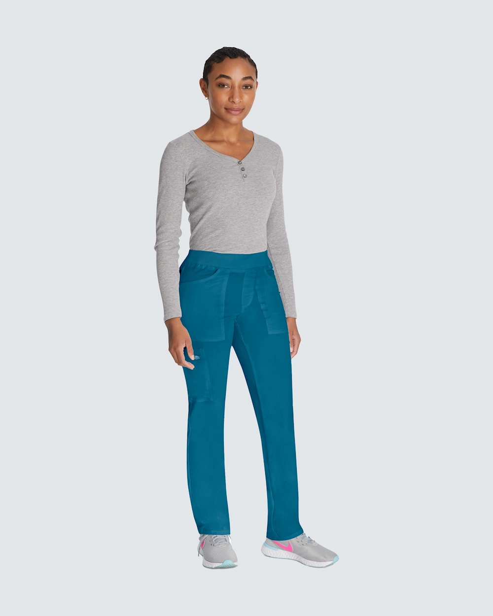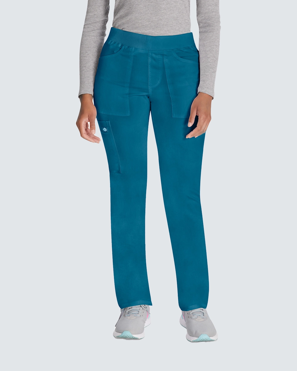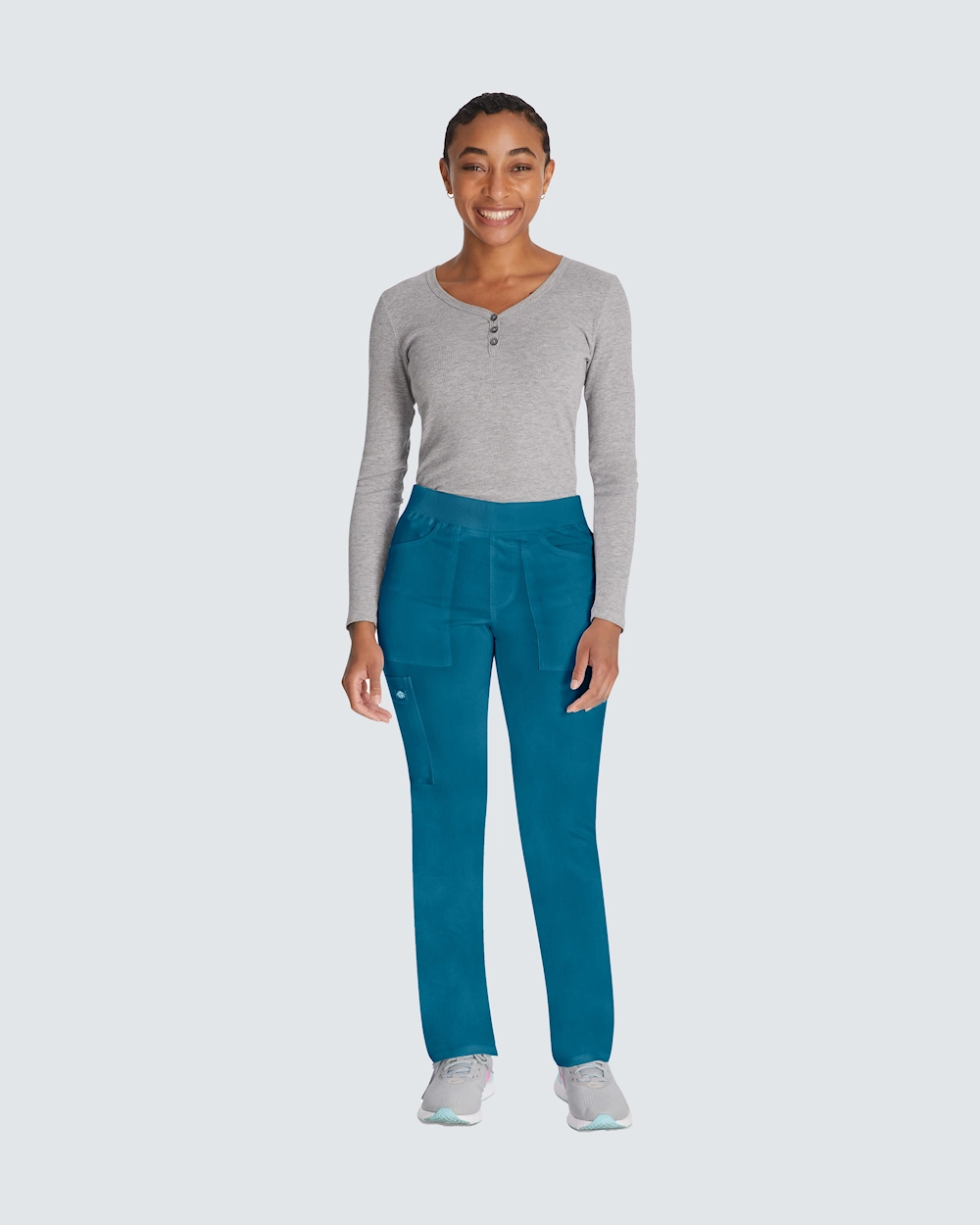 Mukavat työhousut kapenevilla lahkeilla ja tavallisen korkealla vyötäröllä. Työhousut tarjoavat vertaansa vailla olevan mukavuuden pull on -mallillaan ja pehmeällä joustinneulotulla vyötäröllä, jossa on piilotettu kiristysnyöri. Näissä housuissa on 6 käytännöllistä taskua, mukaan lukien piilotettu vetoketju, ja ne tarjoavat älykkään ja turvallisen säilytyksen. Hengittävästä kaksisuuntaisesta joustomateriaalista valmistetuissa housuissa kestävyys ja toimivuus yhdistyvät pitkien työpäivien aikana. Välttämätön vaate terveydenhuollon ammattilaisille, jotka etsivät tasapainoa tyylin ja mukavuuden välillä.