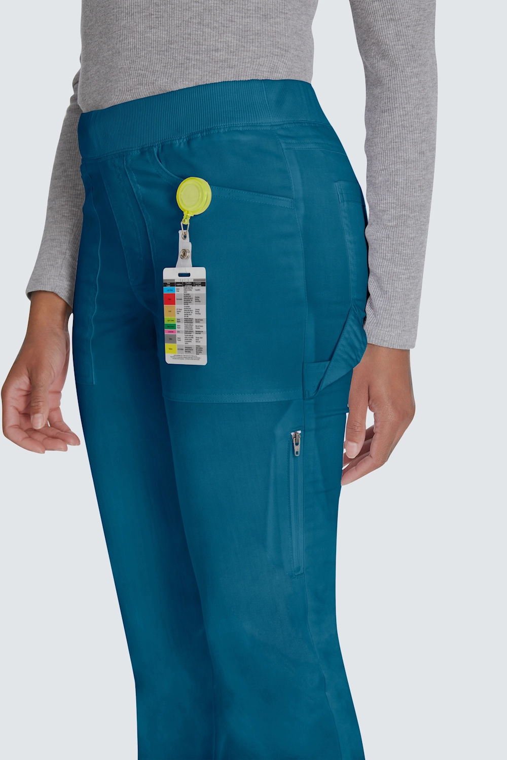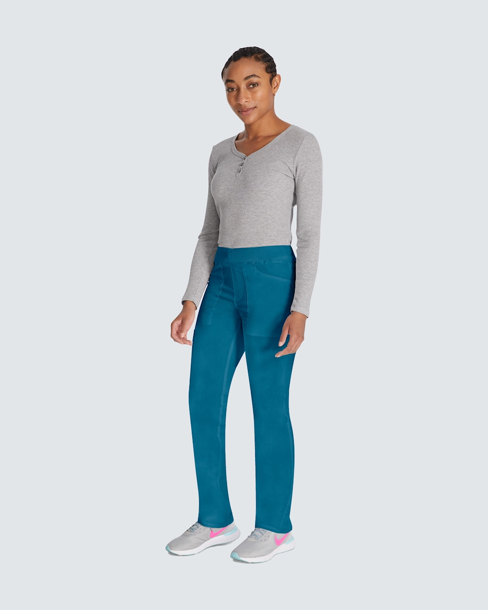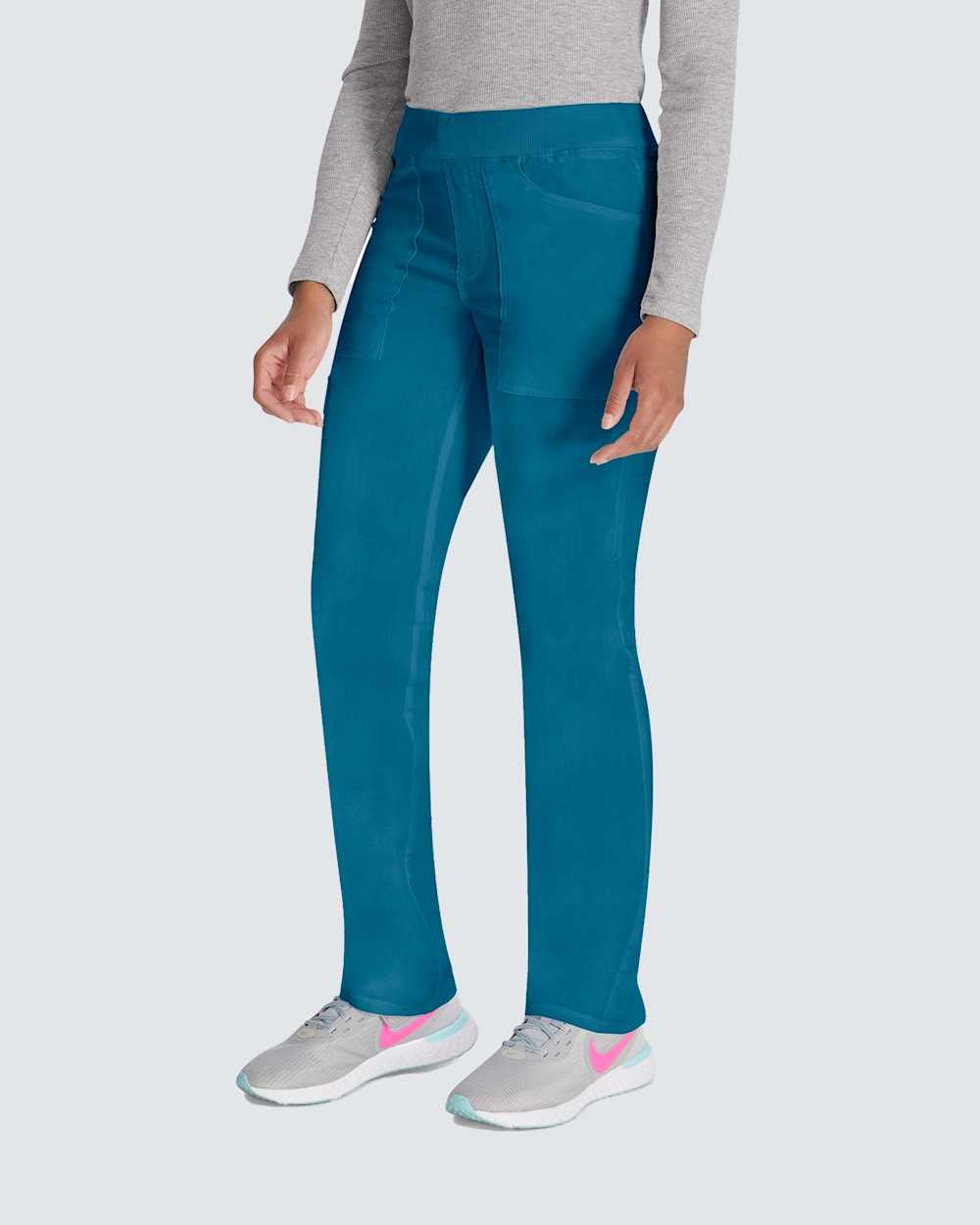 Mukavat työhousut kapenevilla lahkeilla ja tavallisen korkealla vyötäröllä. Työhousut tarjoavat vertaansa vailla olevan mukavuuden pull on -mallillaan ja pehmeällä joustinneulotulla vyötäröllä, jossa on piilotettu kiristysnyöri. Näissä housuissa on 6 käytännöllistä taskua, mukaan lukien piilotettu vetoketju, ja ne tarjoavat älykkään ja turvallisen säilytyksen. Hengittävästä kaksisuuntaisesta joustomateriaalista valmistetuissa housuissa kestävyys ja toimivuus yhdistyvät pitkien työpäivien aikana. Välttämätön vaate terveydenhuollon ammattilaisille, jotka etsivät tasapainoa tyylin ja mukavuuden välillä.