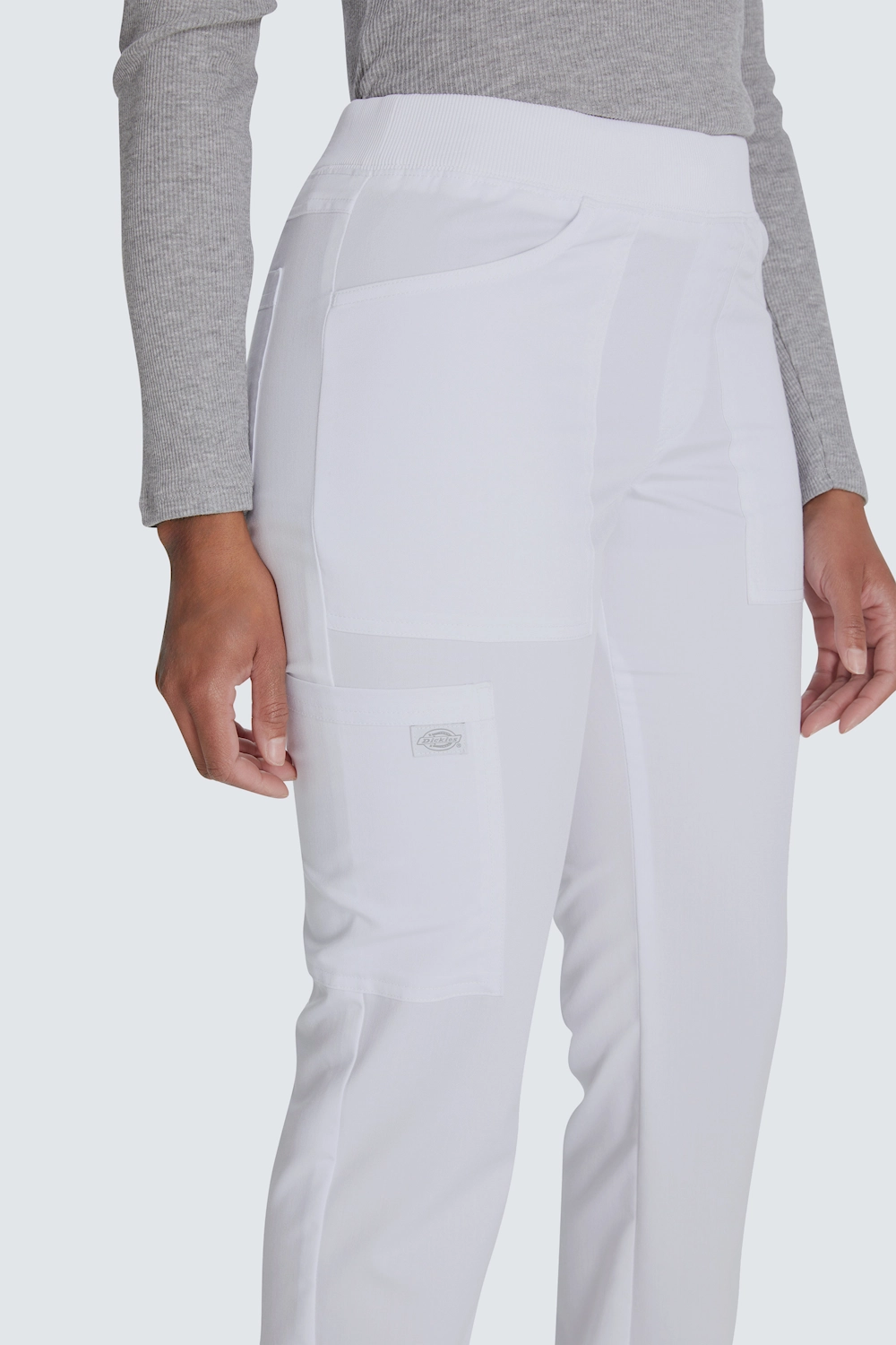 Mukavat työhousut kapenevilla lahkeilla ja tavallisen korkealla vyötäröllä. Työhousut tarjoavat vertaansa vailla olevan mukavuuden pull on -mallillaan ja pehmeällä joustinneulotulla vyötäröllä, jossa on piilotettu kiristysnyöri. Näissä housuissa on 6 käytännöllistä taskua, mukaan lukien piilotettu vetoketju, ja ne tarjoavat älykkään ja turvallisen säilytyksen. Hengittävästä kaksisuuntaisesta joustomateriaalista valmistetuissa housuissa kestävyys ja toimivuus yhdistyvät pitkien työpäivien aikana. Välttämätön vaate terveydenhuollon ammattilaisille, jotka etsivät tasapainoa tyylin ja mukavuuden välillä.
