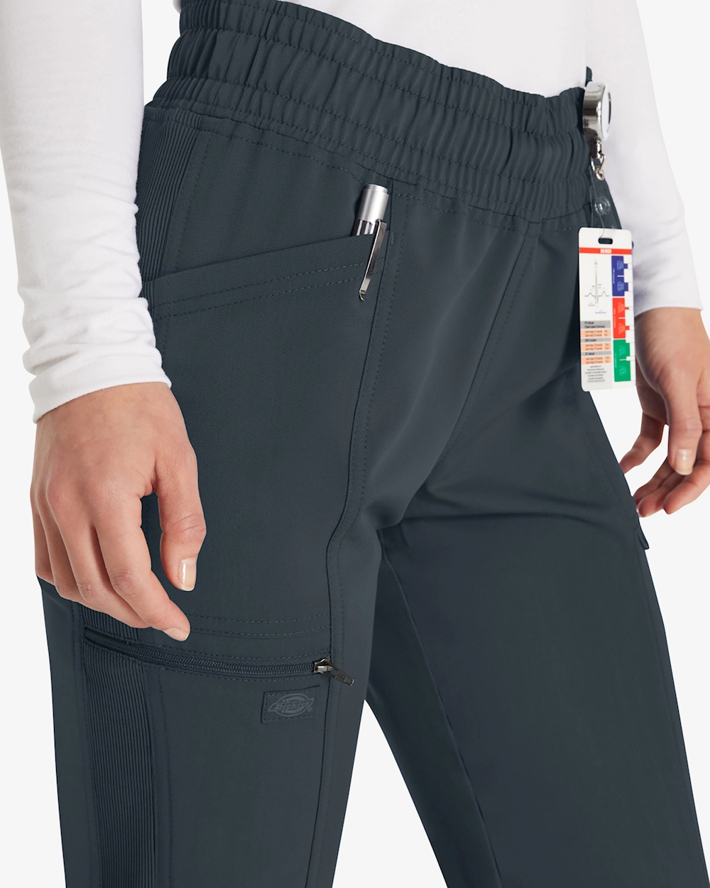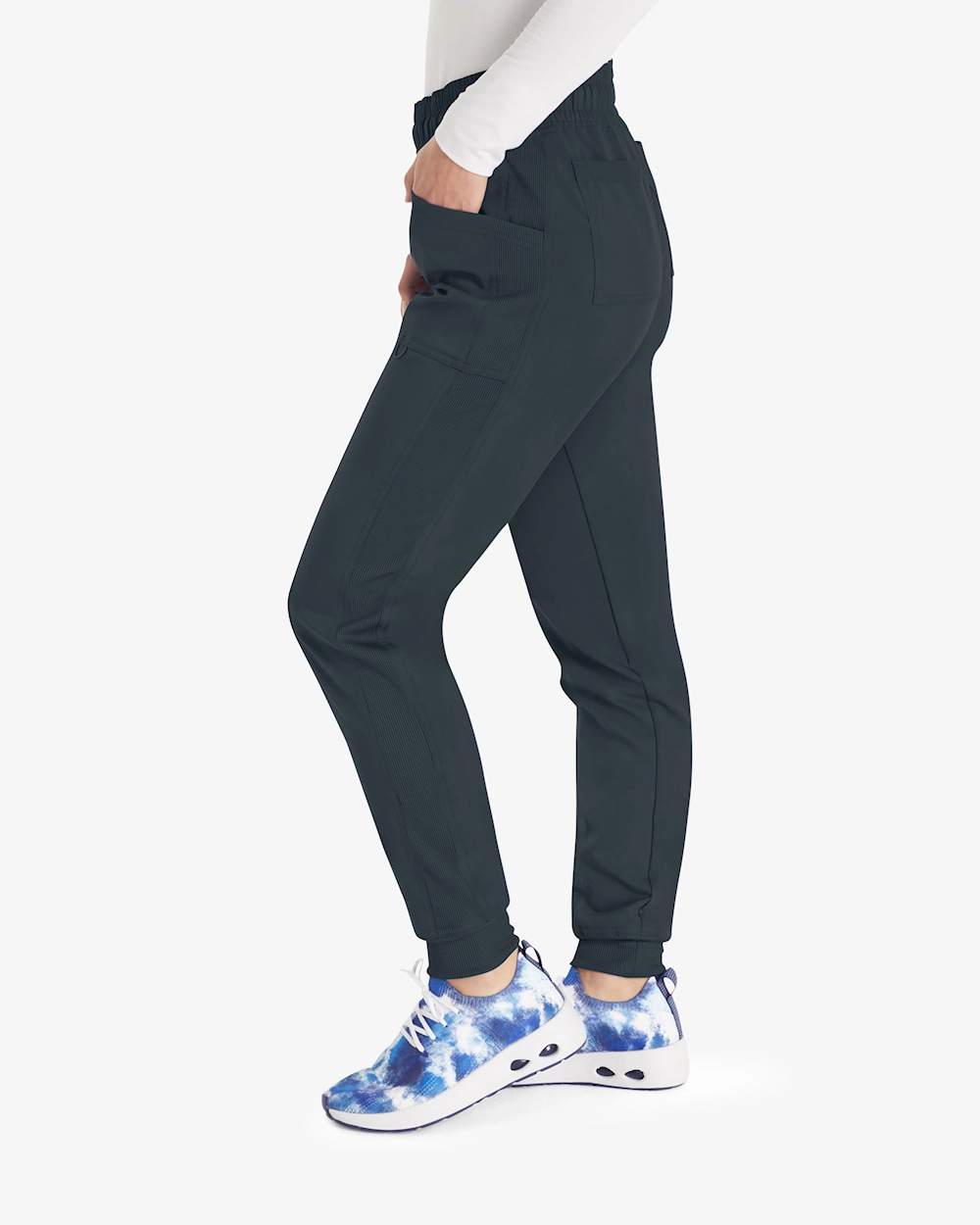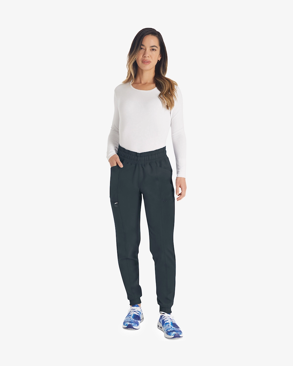 Modernisti istuvissa, keskikorkeissa jogger-housuissa yhdistyvät tyyli ja toiminnallisuus terveydenhuollon ammattilaisille. Joustava kiristysnauha vyötäröllä ja ribbipaneelit tarjoavat mukavan ja joustavan tuntuman. Viisi kätevää taskua, mukaan lukien vetoketjullinen turvatasku ja nippusilmukka, helpottavat kaikkien välttämättömien tavaroiden säilyttämistä. Kapenevat lahkeet ja 2-suuntainen stretch lisäävät liikkumisen vapautta pitkien työpäivien aikana.