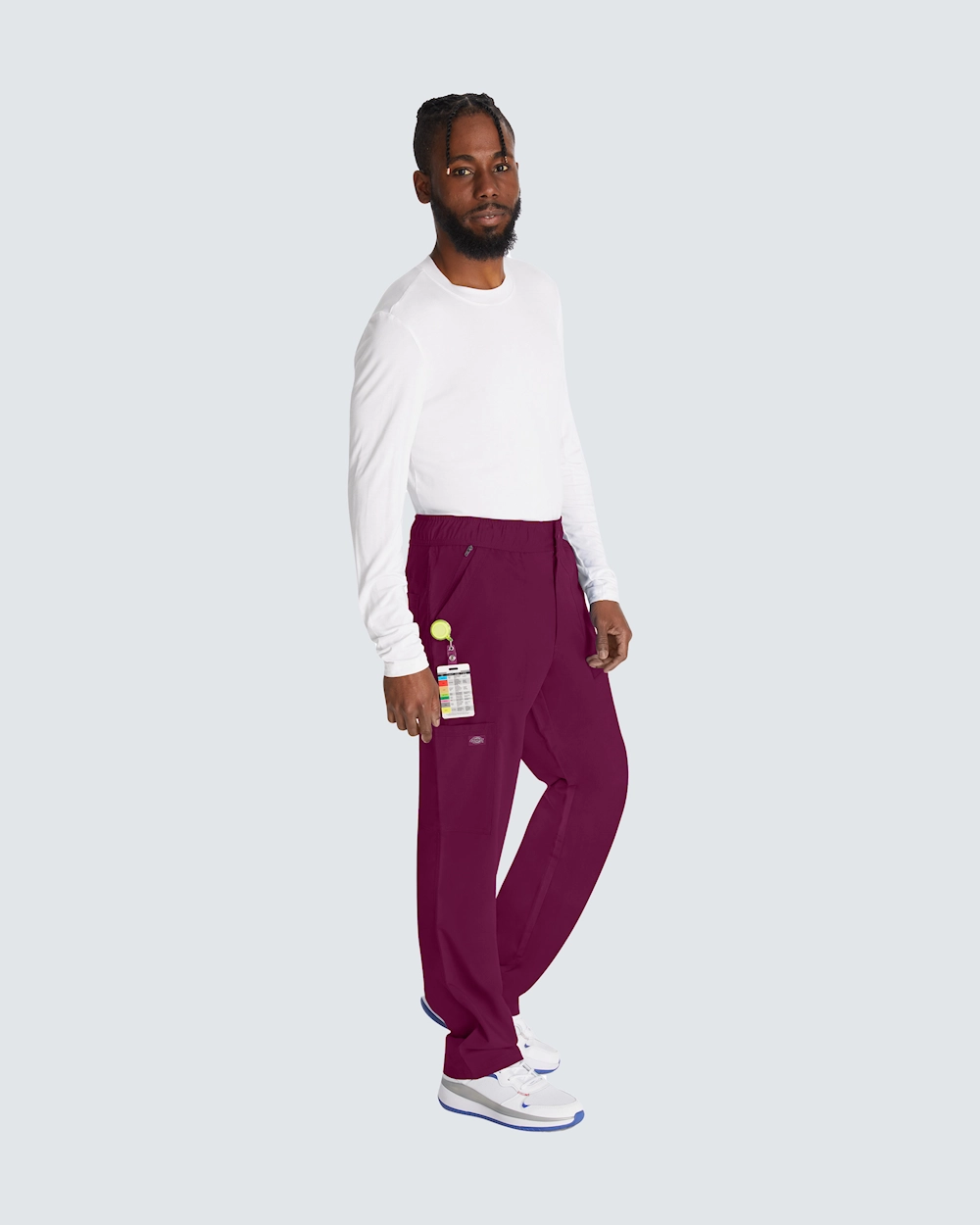 Suoralahkeiset Dickies-työhousut tavallisen korkealla vyötäröllä tarjoavat sekä tyyliä että toiminnallisuutta terveydenhuollon ammattilaisille. Joustinnauha ja kiristysnyöri vyötärön sisäpuolella tarjoavat joustavan istuvuuden, joka sopii kaikille. Näissä housuissa on kuusi taskua, mukaan lukien piilotettu vetoketjullinen tasku, ja niissä on runsaasti tilaa välttämättömille työkaluille. Dickies yhdistää toiminnallisuuden ja tyylin moderniin työvaatekaappiin.