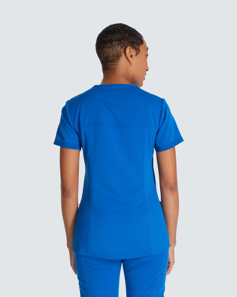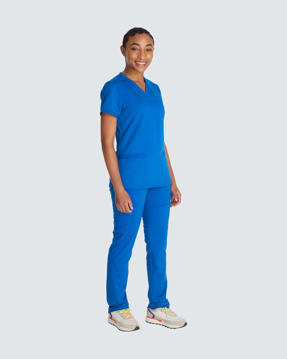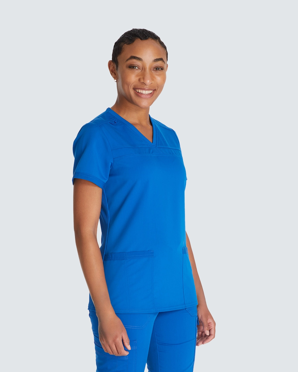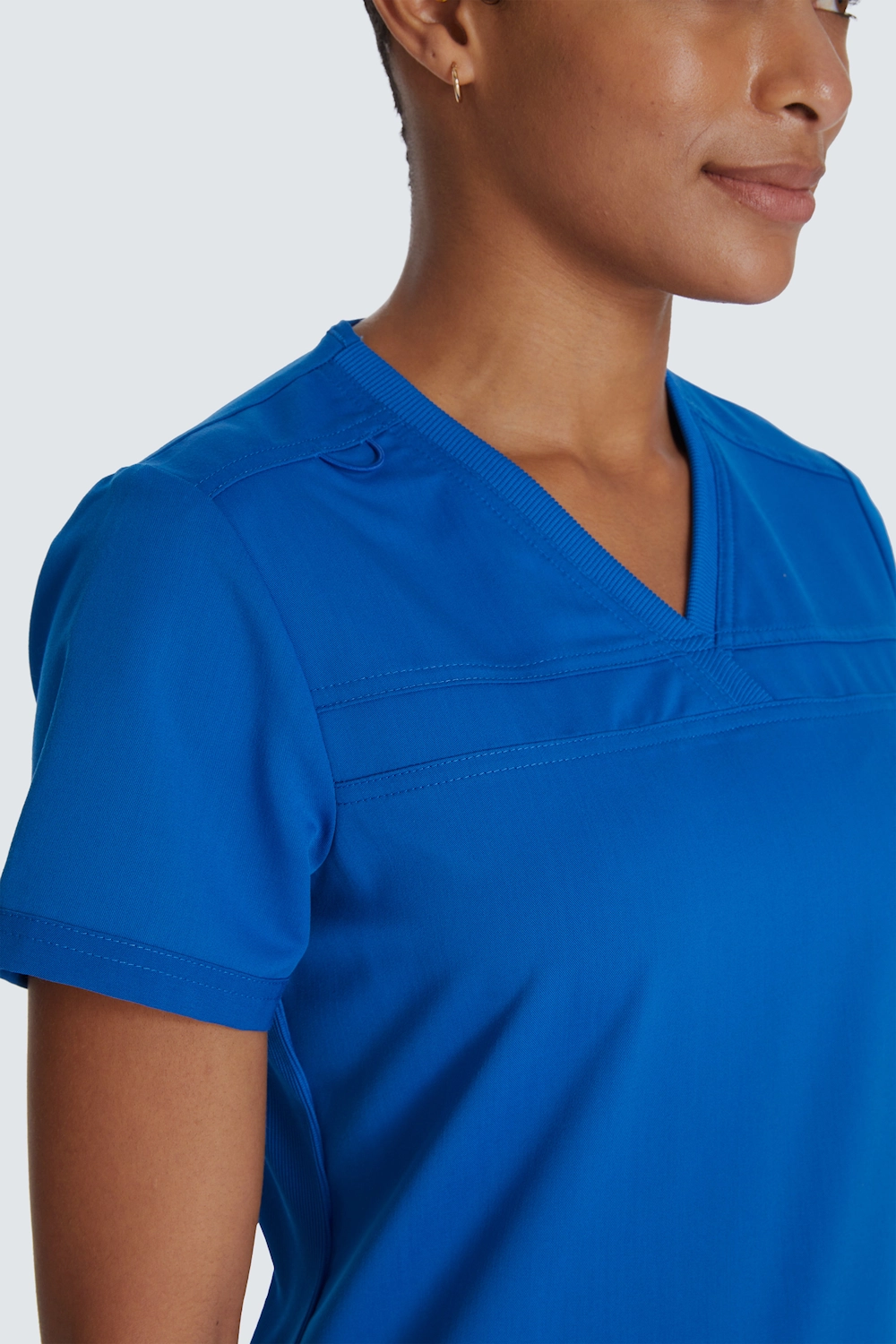 Joustavat sivupaneelit tarjoavat lisämukavuutta ja paremman liikkumisvapauden, mikä tekee siitä täydellisen pitkiä työpäiviä varten. Tunikassa on hieman kaareva istuvuus ja kaksi ulkotaskua tärkeiden esineiden säilytykseen. Ihanteellinen terveydenhuollon ammattilaisille, jotka arvostavat sekä tyyliä että mukavuutta.