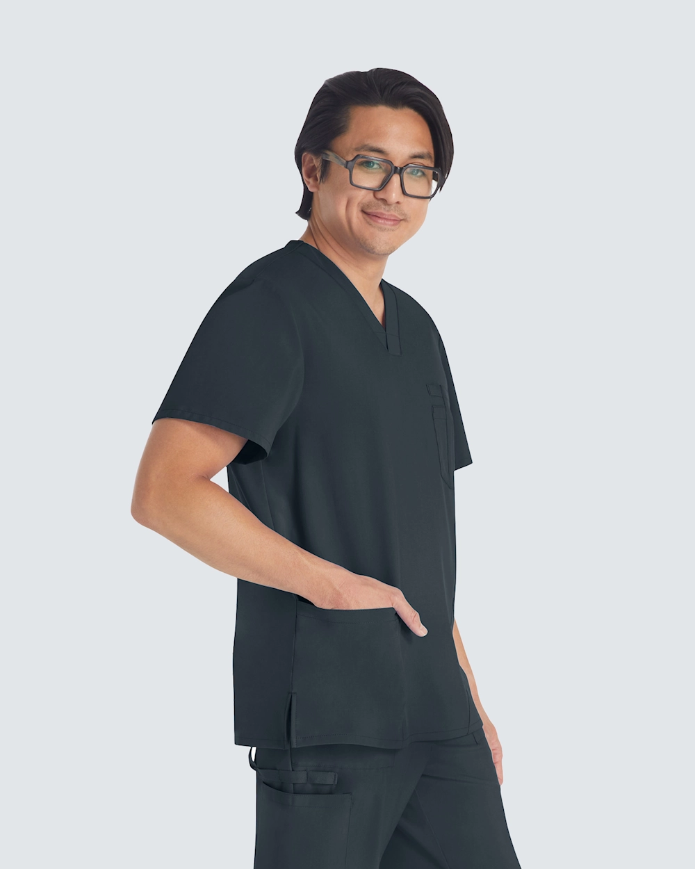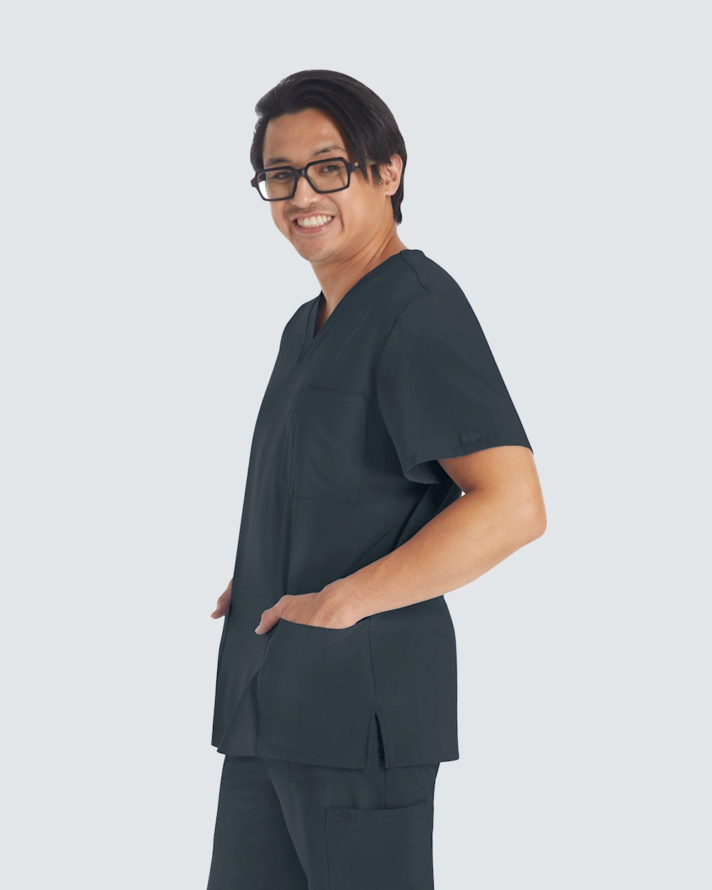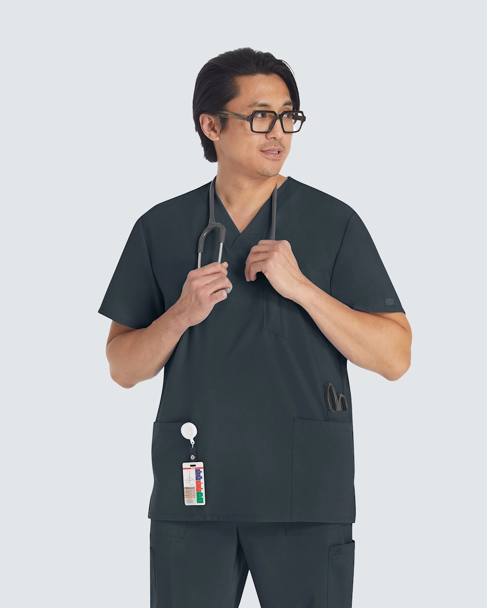 Dickies Miesten Bussarong klassisella v-pääntiellä tarjoaa lyömätöntä toiminnallisuutta ja mukavuutta terveydenhuollon ammattilaisille. Neljällä taskulla ja kynätaskulla sinulla on kaikki työkalut ja apuvälineet käden ulottuvilla. Materiaali on kosteutta imevä ja valmistettu nelisuuntaisesta joustokankaasta optimaalisen liikkumisvapauden takaamiseksi.