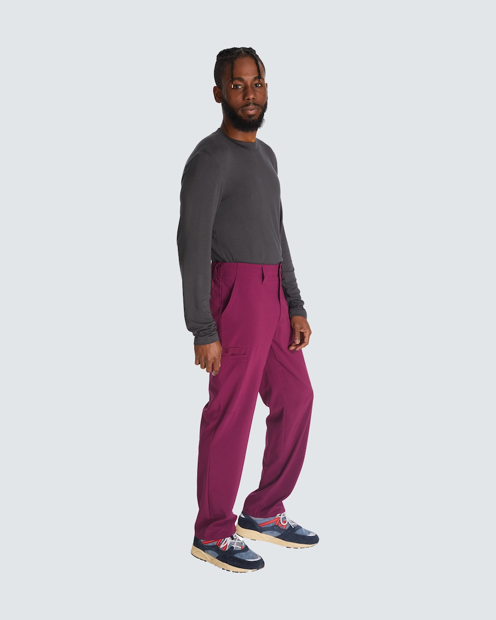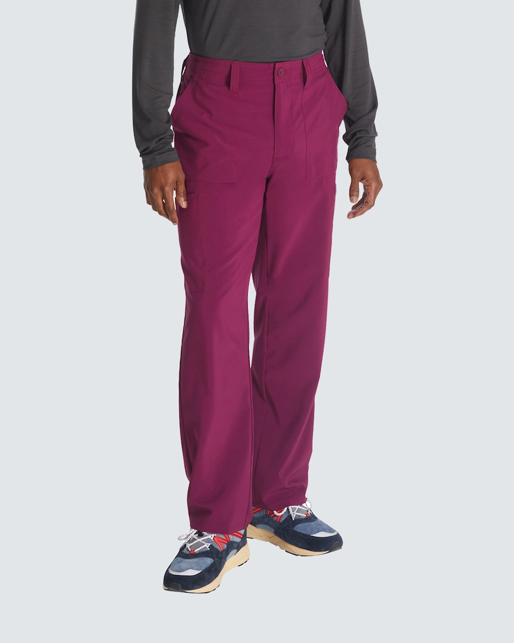 Täydellisen istuvuuden varmistamiseksi näissä suoralinjaisissa housuissa on nappikiinnitys, joustava takaosa ja kiristysnauha vyötärön sisäpuolella. Housuissa on tavallisen korkea vyötärö ja kuusi käytännöllistä taskua, joten niissä on runsaasti säilytystilaa.