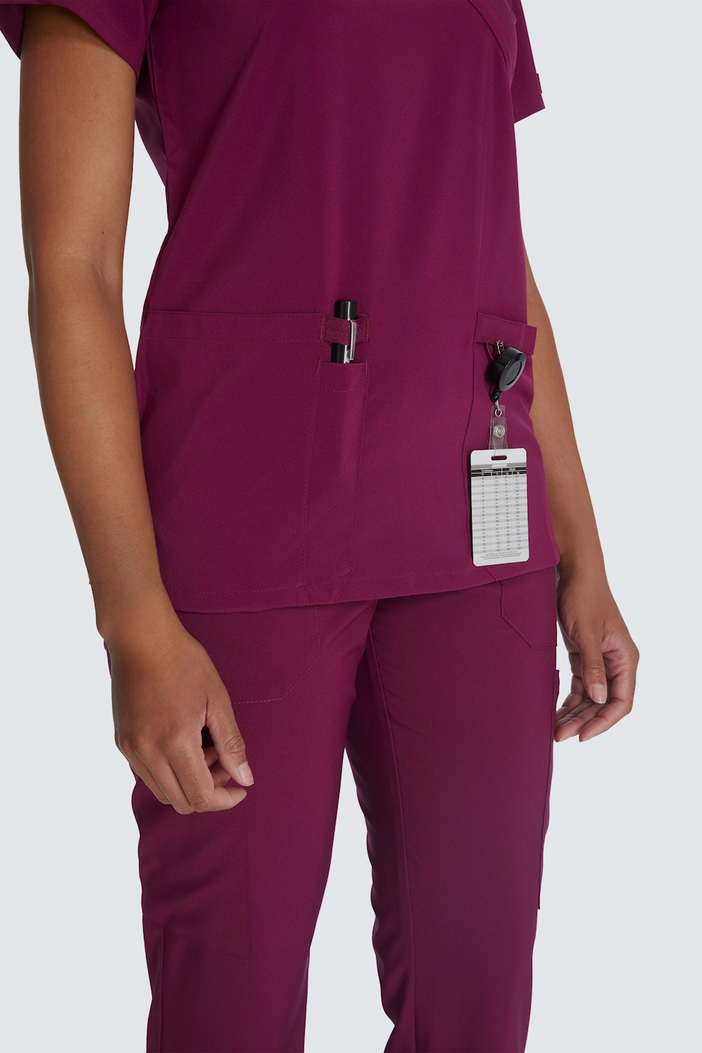 Dickies-tekokietaisutoppi on moderni tunika, jossa yhdistyvät tyyli ja toiminnallisuus. Siinä on kaksi käytännöllistä taskua, kynäteline ja avainsilmukka pienten varusteiden helppoa säilytystä varten. Kestävästä nelisuuntaisesti joustavasta kankaasta valmistettu toppi tarjoaa optimaalisen liikkumisvapauden. Rypistymätön materiaali takaa, että näytät aina ammattimaiselta, olipa työpäivä kuinka kiireinen tahansa.