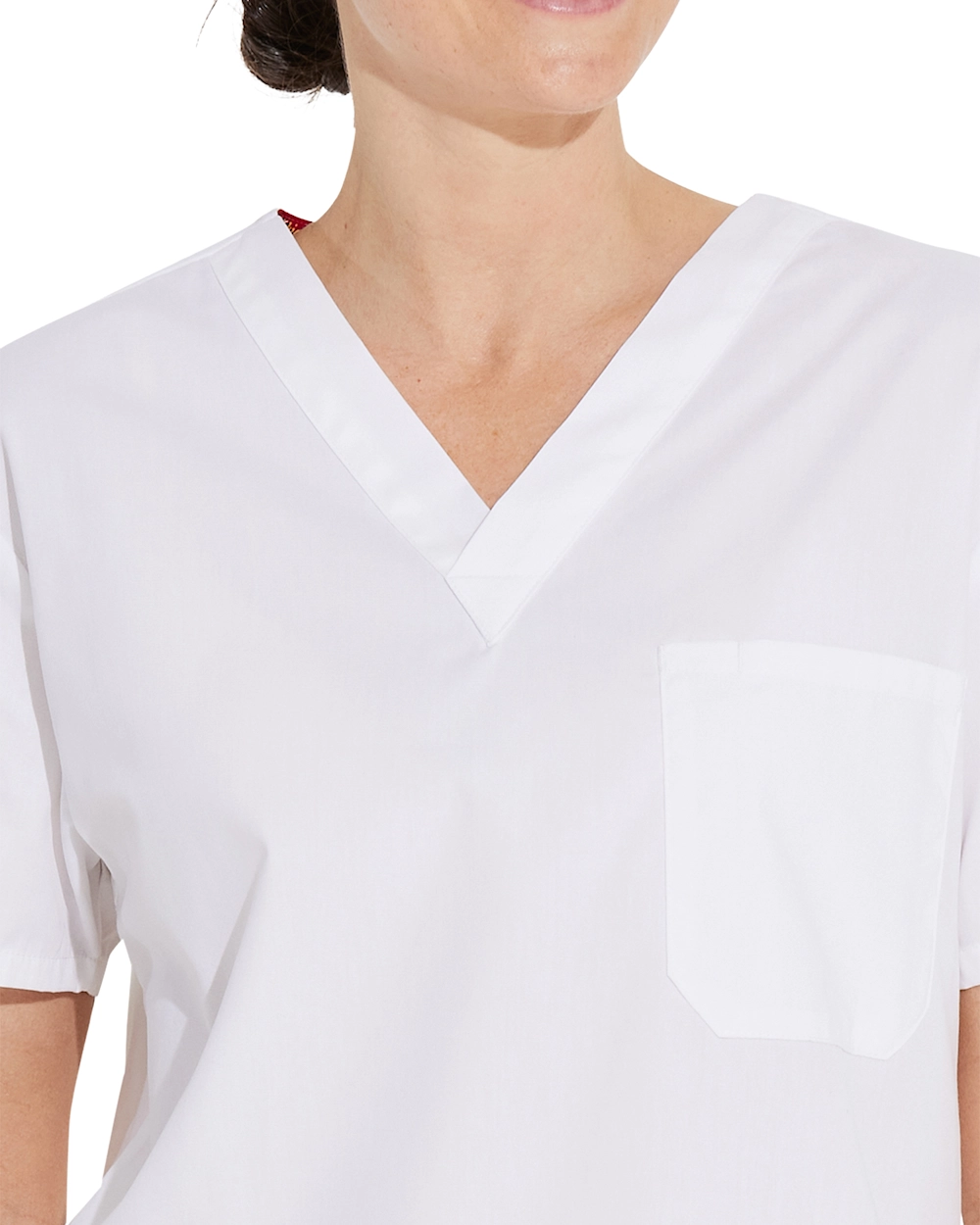 - Unisex V-kaula-aukkoinen tunika, jossa on moderni istuvuus.