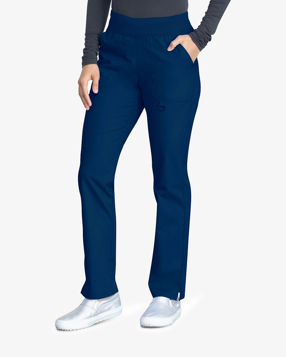 - Neulottu mukavuusvyötärö, jossa säädettävä kiristysnauha.