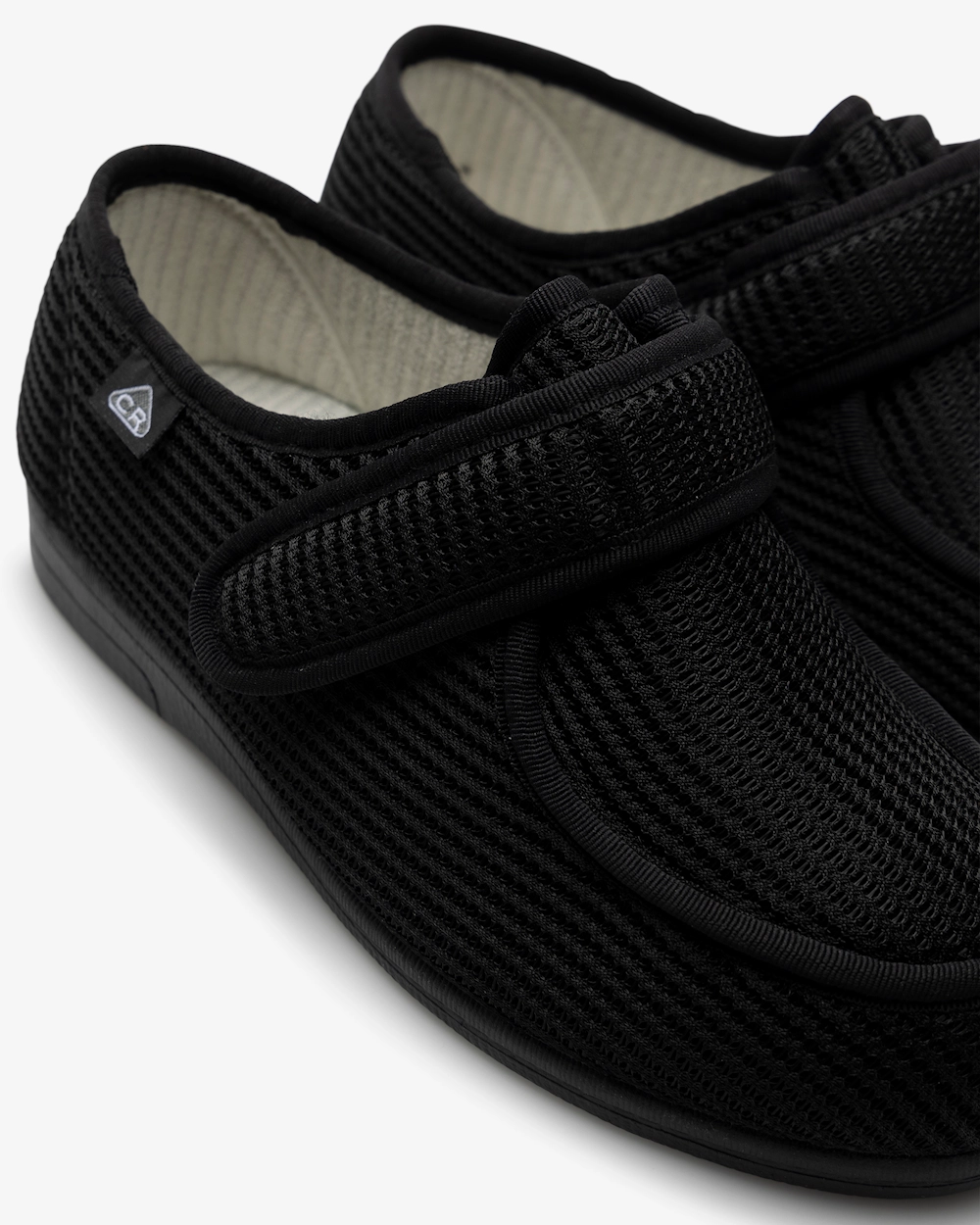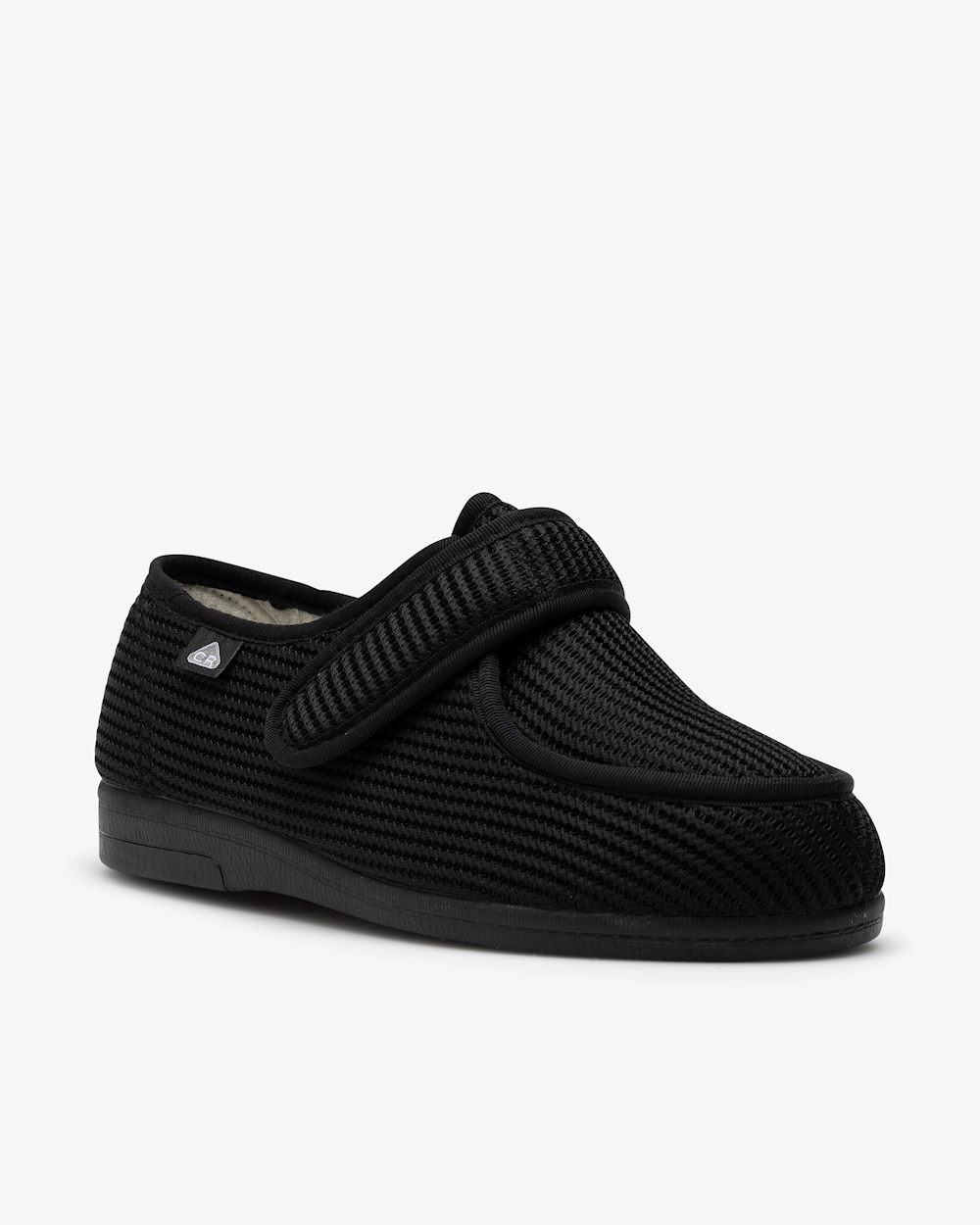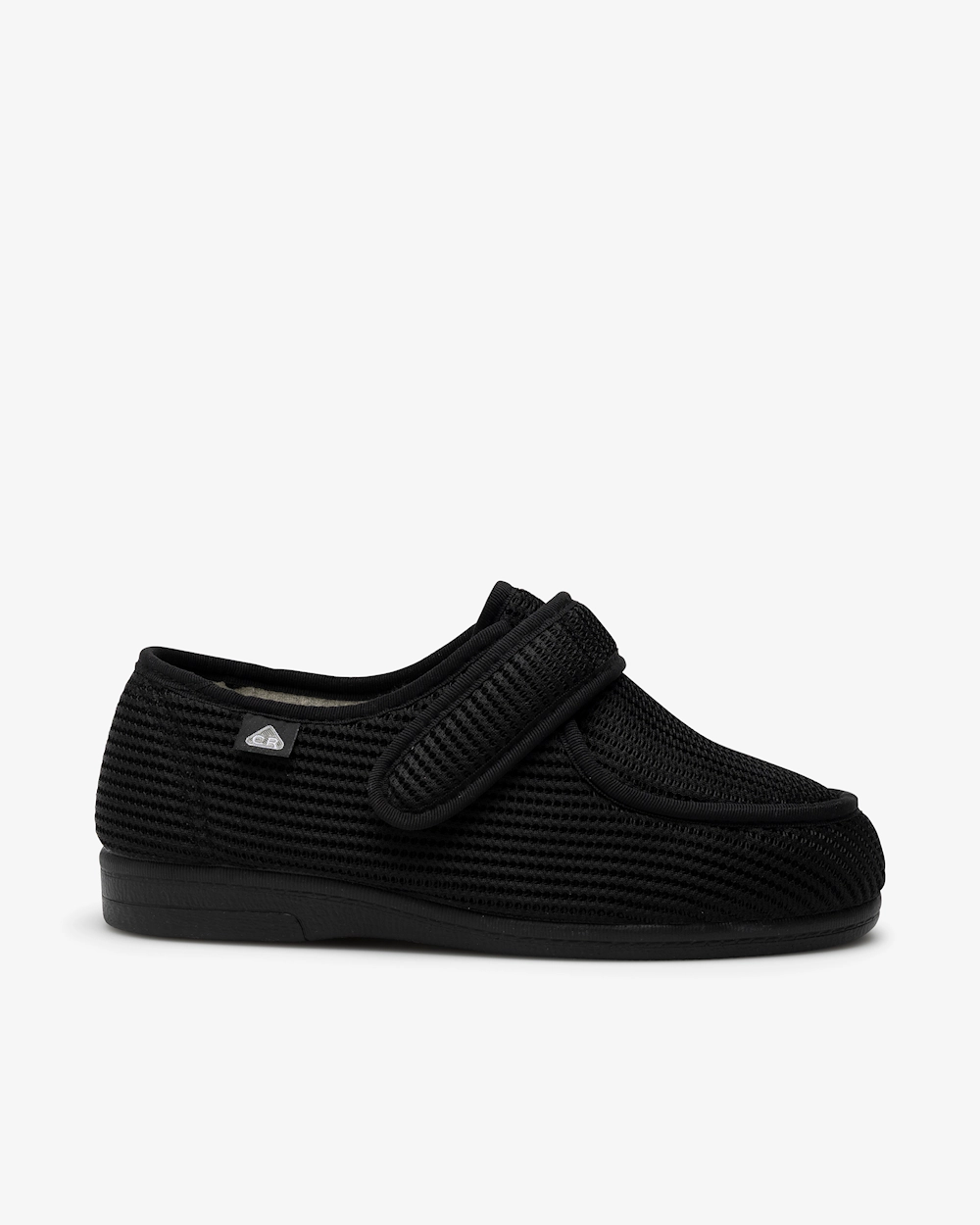 Täysin avattava erikoiskenkä vettä hylkivästä materiaalista. Erittäin leveä lesti ja tarranauhakiinnitys optimaalisen istuvuuden ja mukavuuden takaamiseksi. Kengässä on vakaa ja luistamaton pohja sekä lämmin ja pehmeä yläosa, joka sopii mainiosti myös herkkäjalkaisille käyttäjille. Pestävä ja CE-merkitty.