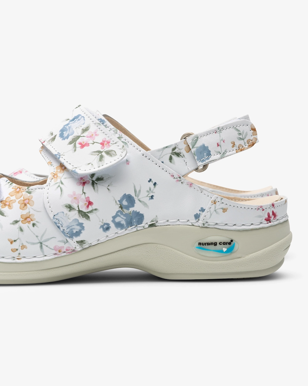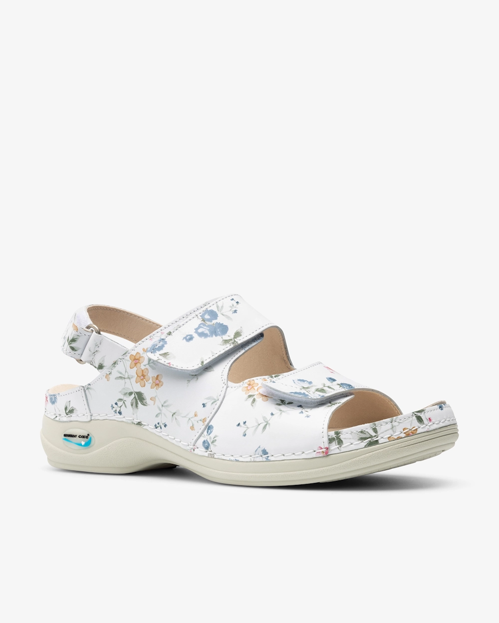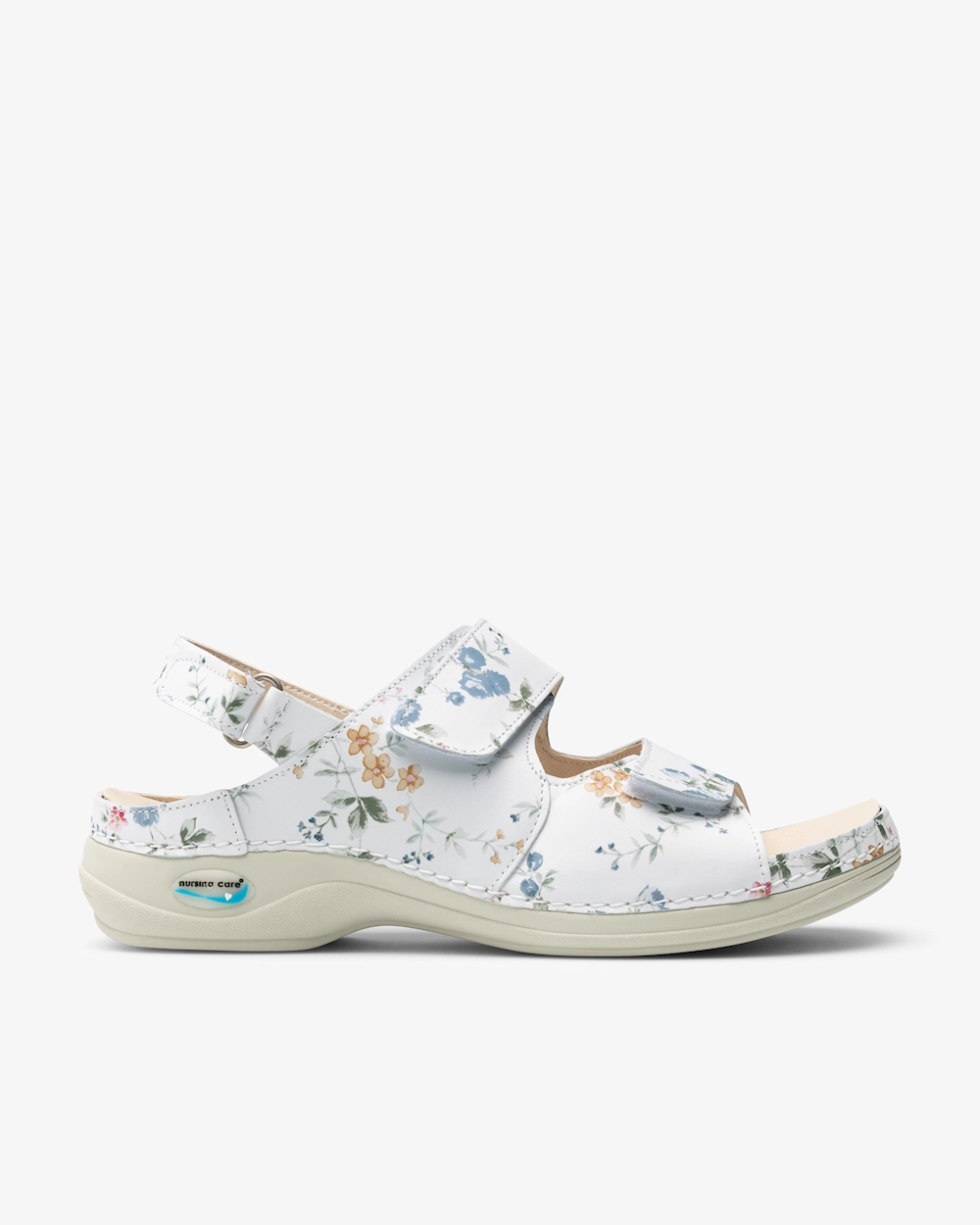 Nahasta tehty naistensandaali, jossa on vaihdettava, ergonominen pohjallinen. Terveydenhuollon ympäristöissä vaaditun hygienian ylläpitämiseksi sandaalit voidaan pestä koneessa max 30⁰C:ssa. Liukumaton ulkopohja, jossa takaa hyvän pidon, ja antistaattiset ominaisuudet, jotka suojaavat staattiselta sähköltä. Optimaalinen istuvuus voidaan varmistaa kolmella säädettävällä tarranauharemmillä, joista kaksi on yläosassa ja yksi takana.