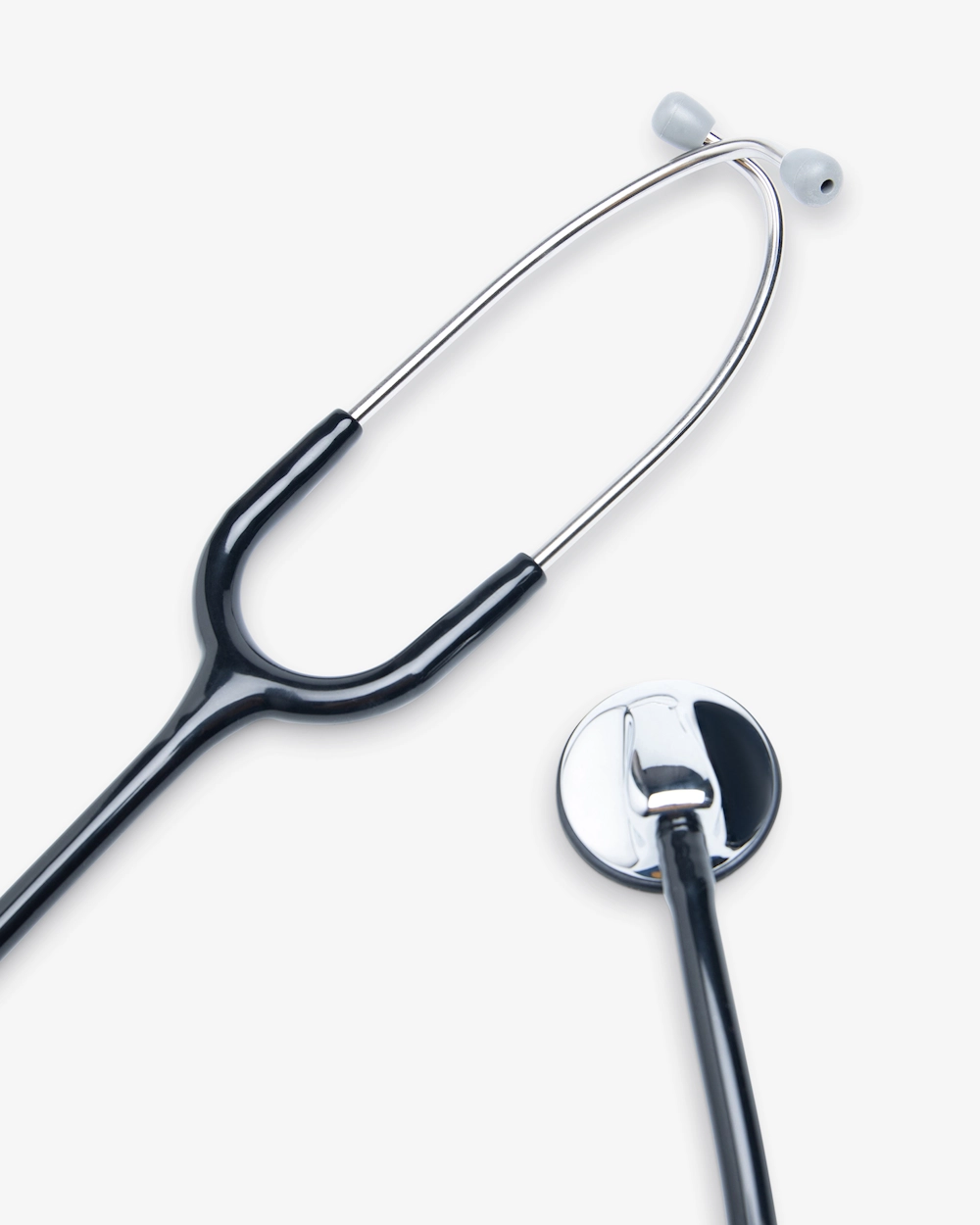 Laadukas, ammattikäyttöön tarkoitettu stetoskooppi, jossa on yksipuolinen rintakappale ja nestemäinen kalvo. Tämä stetoskooppi mahdollistaa turvalliset ja luotettavat diagnostiikka-auskultaatiot. Nestemäinen kalvo mahdollistaa sekä korkeiden että matalien äänien kuuntelun ilman, että rintakappaletta tarvitsee kääntää ympäri. Paina rintakappaletta kevyesti rintaa vasten, jotta kuulet matalataajuiset äänet, ja hieman voimakkaammin, jos haluat kuunnella korkeataajuisia ääniä. Stetoskoopissa on muotoiltu rintakappale otteen parantamiseksi, sekä kalvo, joka ei tunnu viileältä iholla, mikä lisää potilaan mukavuutta. GIMA Regalite Professional stetoskoopissa on ergonomiset, pehmeät korvakappaleet optimaalisen istuvuuden ja entistä paremman äänentoiston varmistamiseksi. Stetoskoopissa on vahvistetut kuuntelukaaret, joiden istuvuutta voidaan säätää vetämällä niitä kauemmas toisistaan tai työntämällä lähemmäs toisiaan. Pehmeässä ja joustavassa letkussa on kestävä SUPERFLEX-pinta, joka ehkäisee letkun haalistumisen ja halkeilemisen.