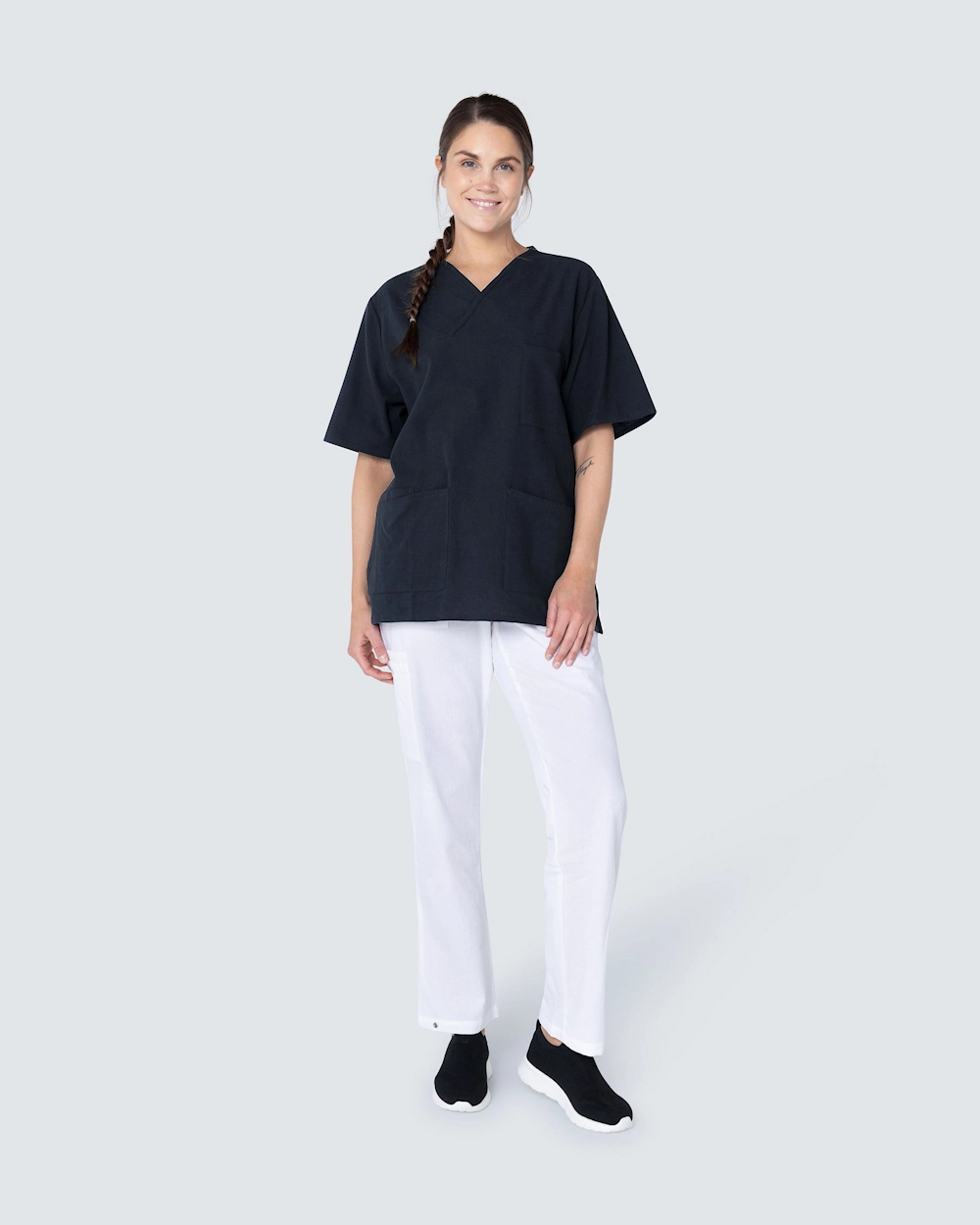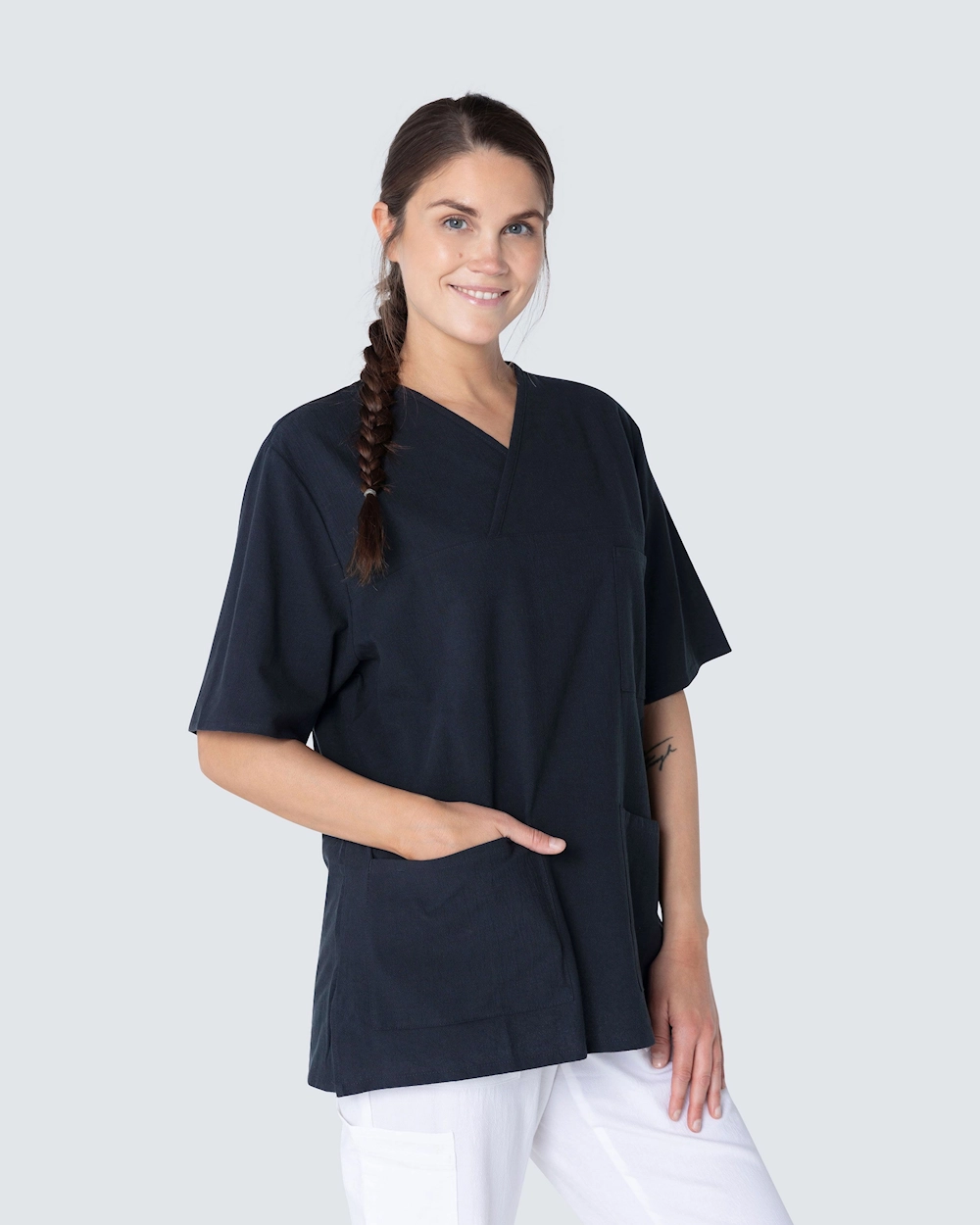 Colin on mukava pusero unisex-mallissa. Vaate on valmistettu kokonaan puuvillasta ja kuuluu Hejcon Crinkle-kokoelmaan. Lyhythihainen, v-kaula-aukko ja sivuhalkiot. Kaksi sivutaskua, rintatasku ja puhelintasku. Avainpaikka. Sopii terveydenhuollon, hammaslääkärin ja eläinten terveydenhuollon työntekijöille. Materiaali on OEKO-TEX-sertifioitu, mikä tarkoittaa, että se ei sisällä kemikaaleja terveydelle haitallisina pitoisuuksina.